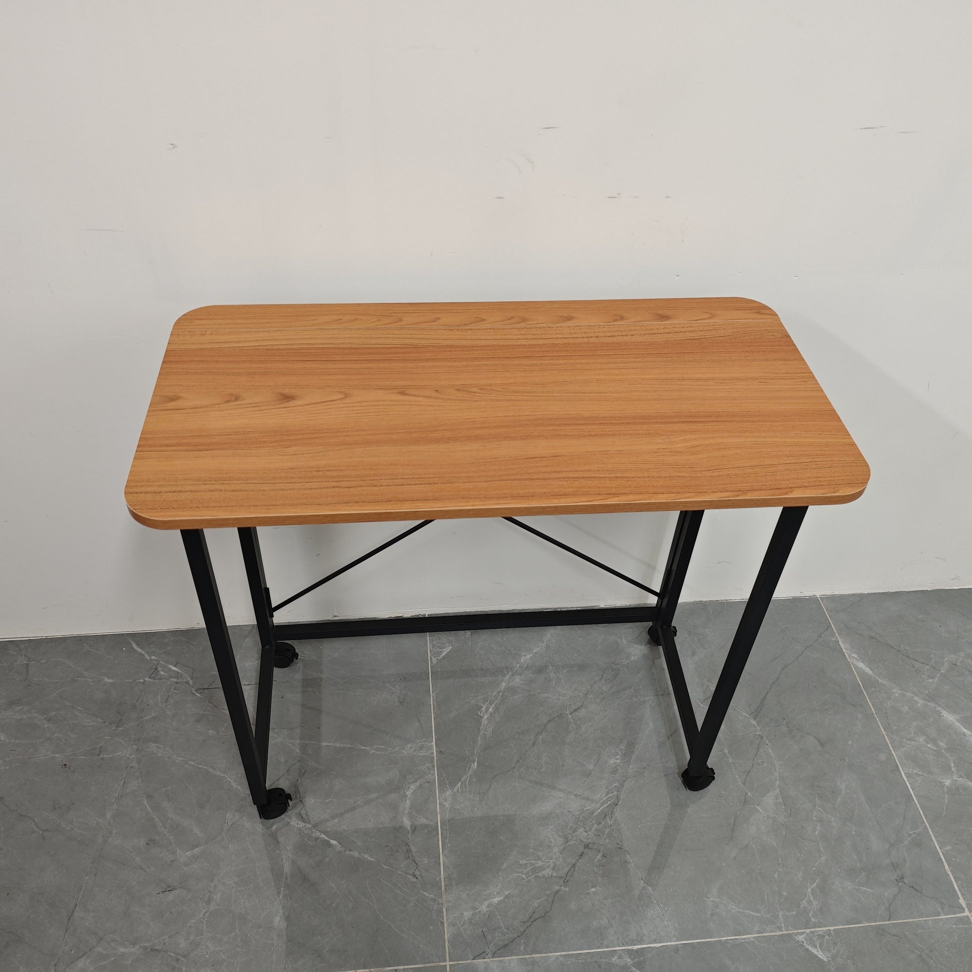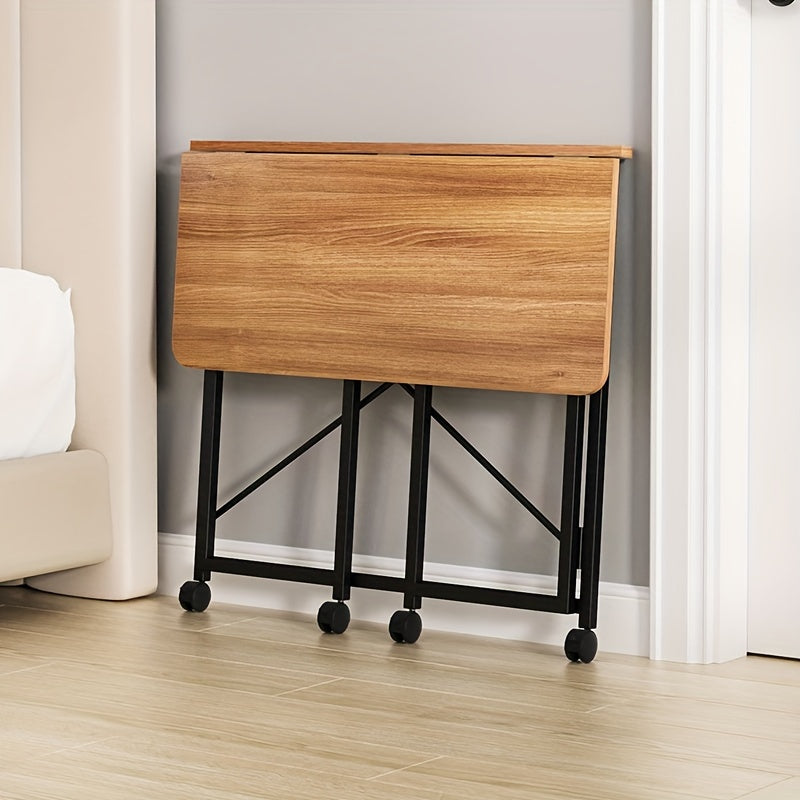 Portable Hardwood Desk with 360° Casters for Small Spaces Floor Mount Brown