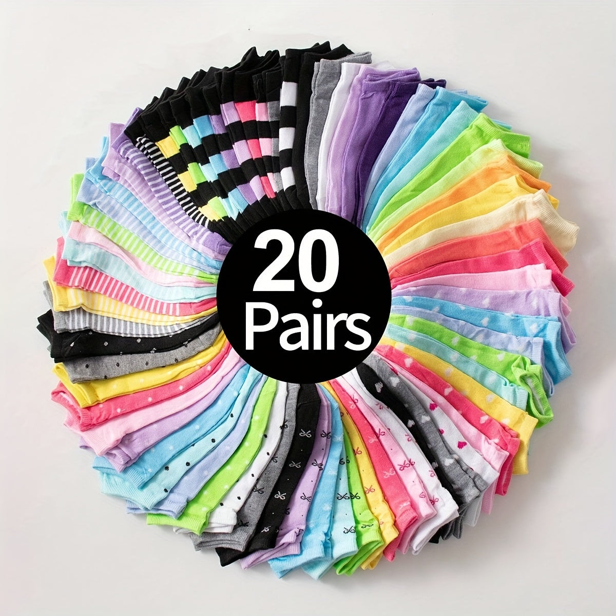 Women’s Ankle Socks 20 Pairs Breathable Cotton-Polyester Candy Colors