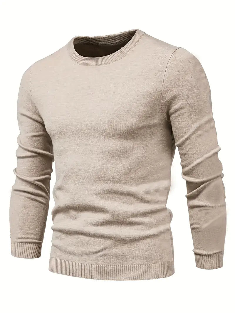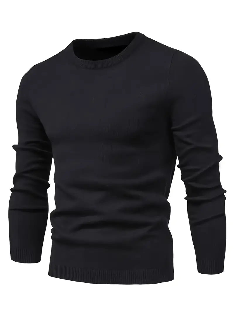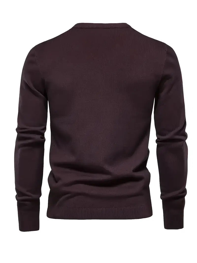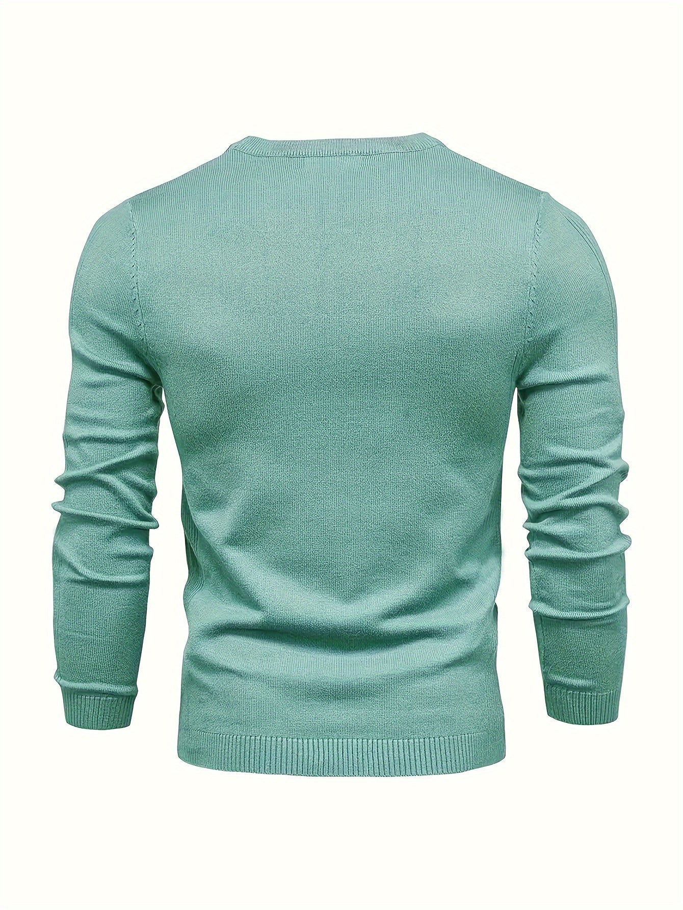 Men's Knit Sweater Fall Winter Solid Color Crew Neck Long Sleeve Medium Stretch Rayon