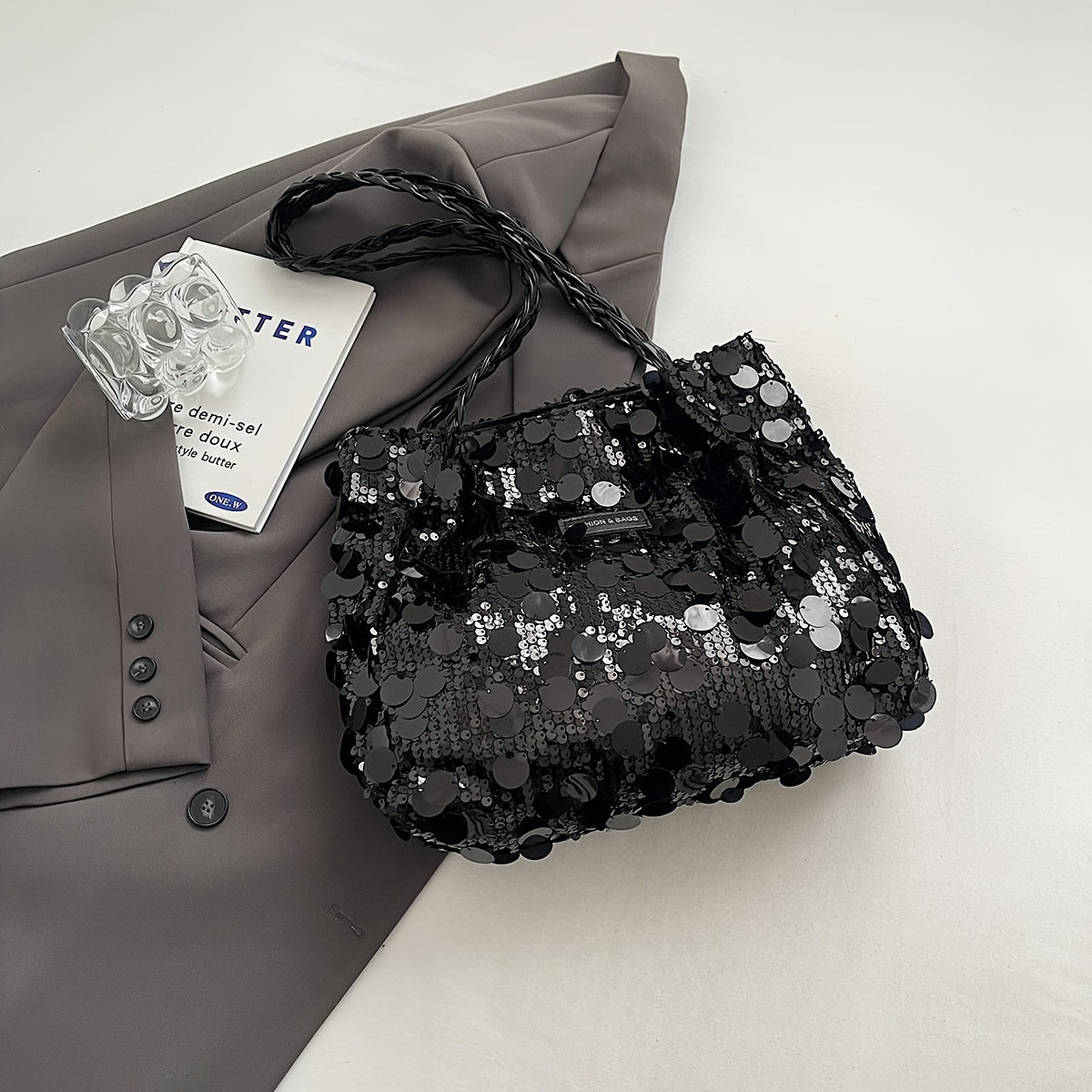Summer Hot Bag with Large Capacity Crossbody Shoulder Bag Black Silver Grey Fabric