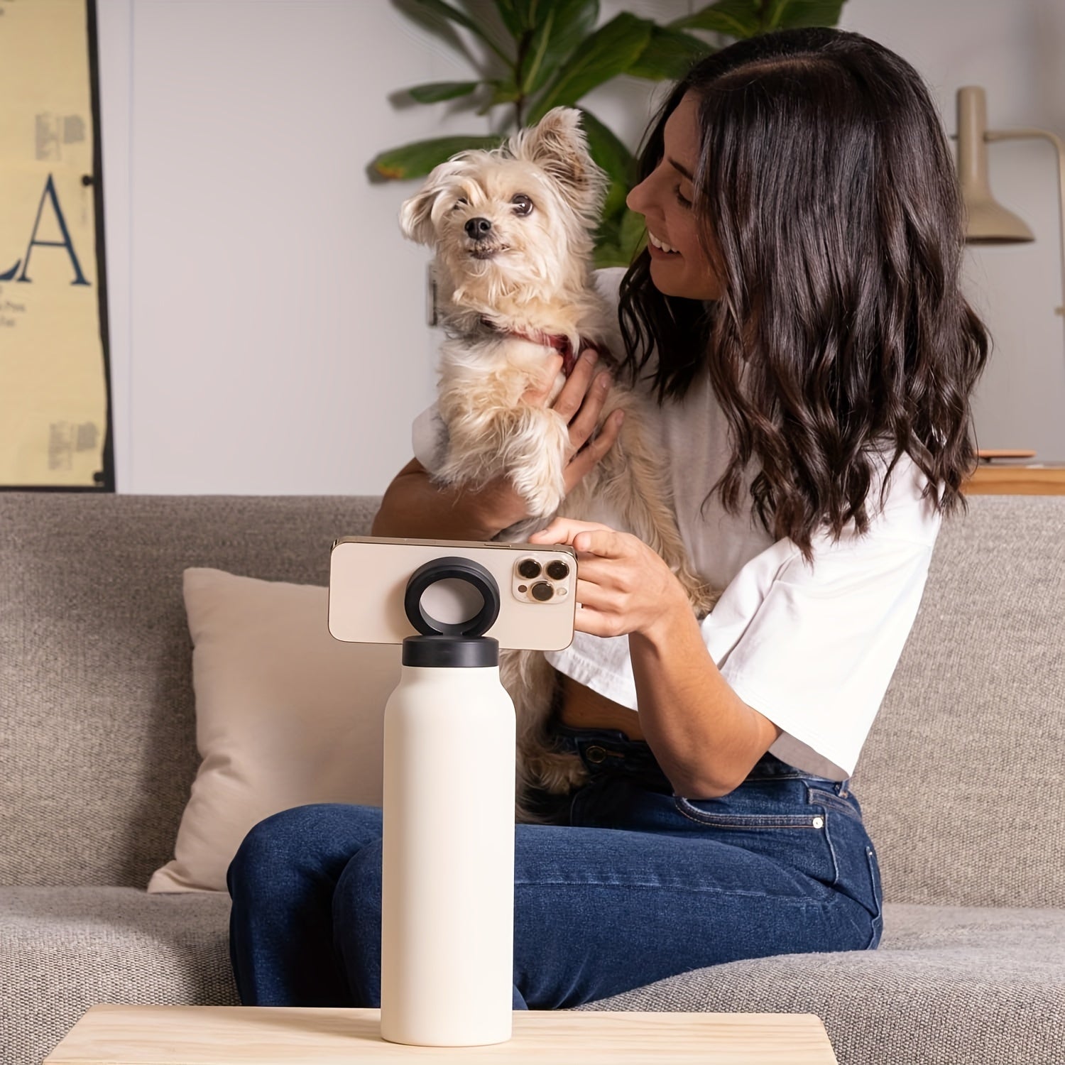 24oz Insulated Stainless Steel Water Bottle with Phone Holder and Magnetic Mount