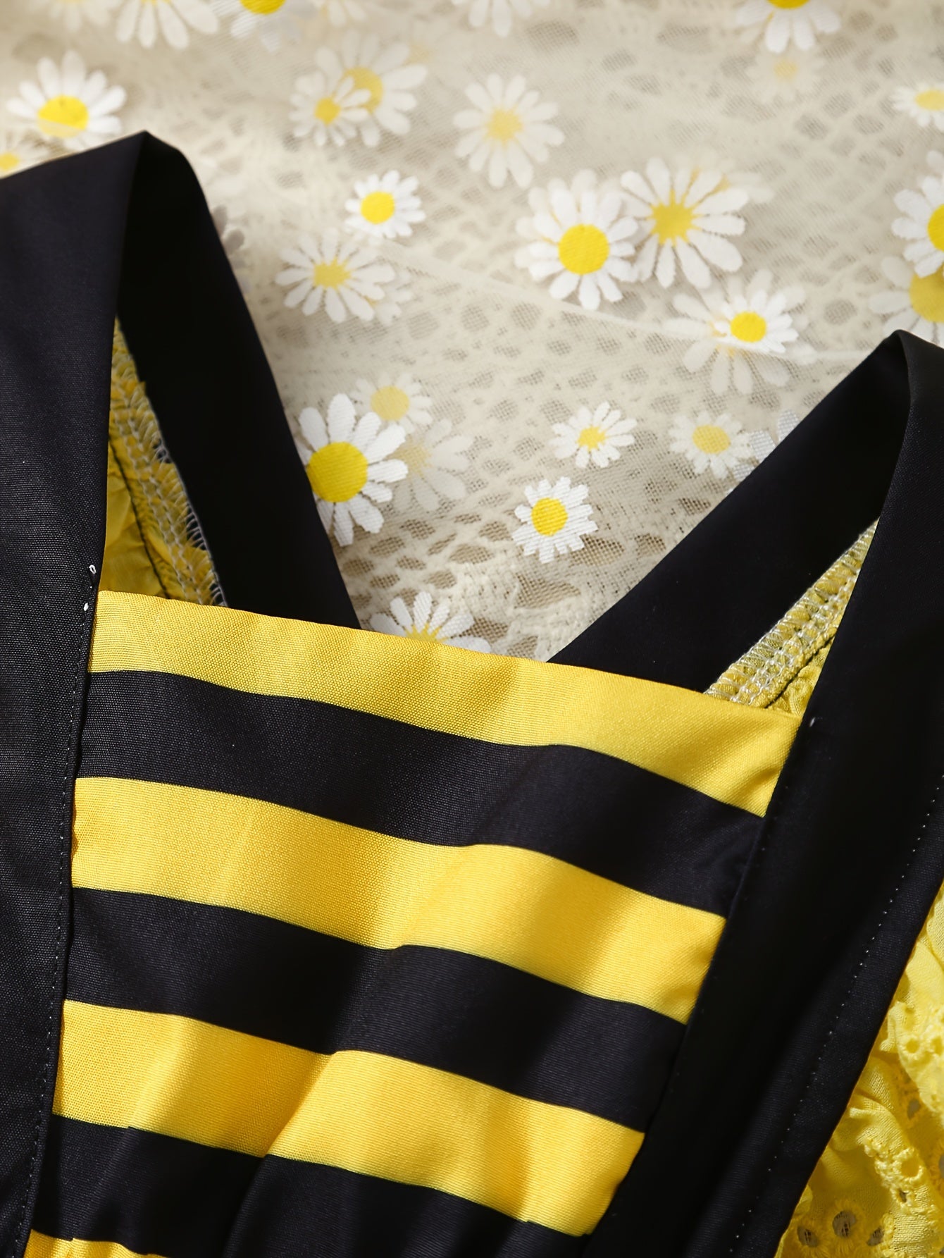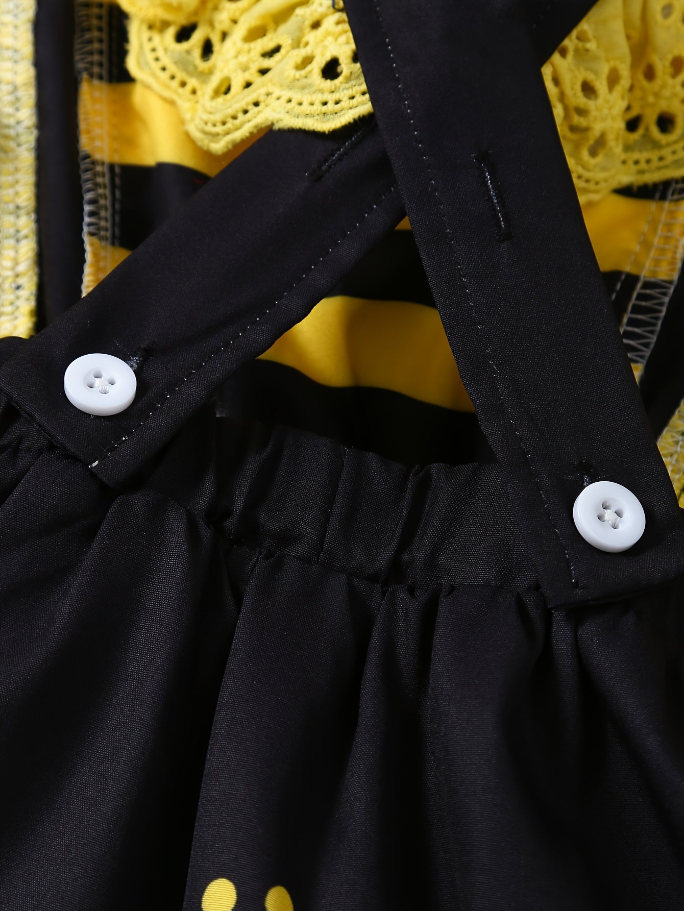 Girls Summer Dress Set with Matching Sun Hat Bee Ladybug Striped Ruffle Trim Polyester