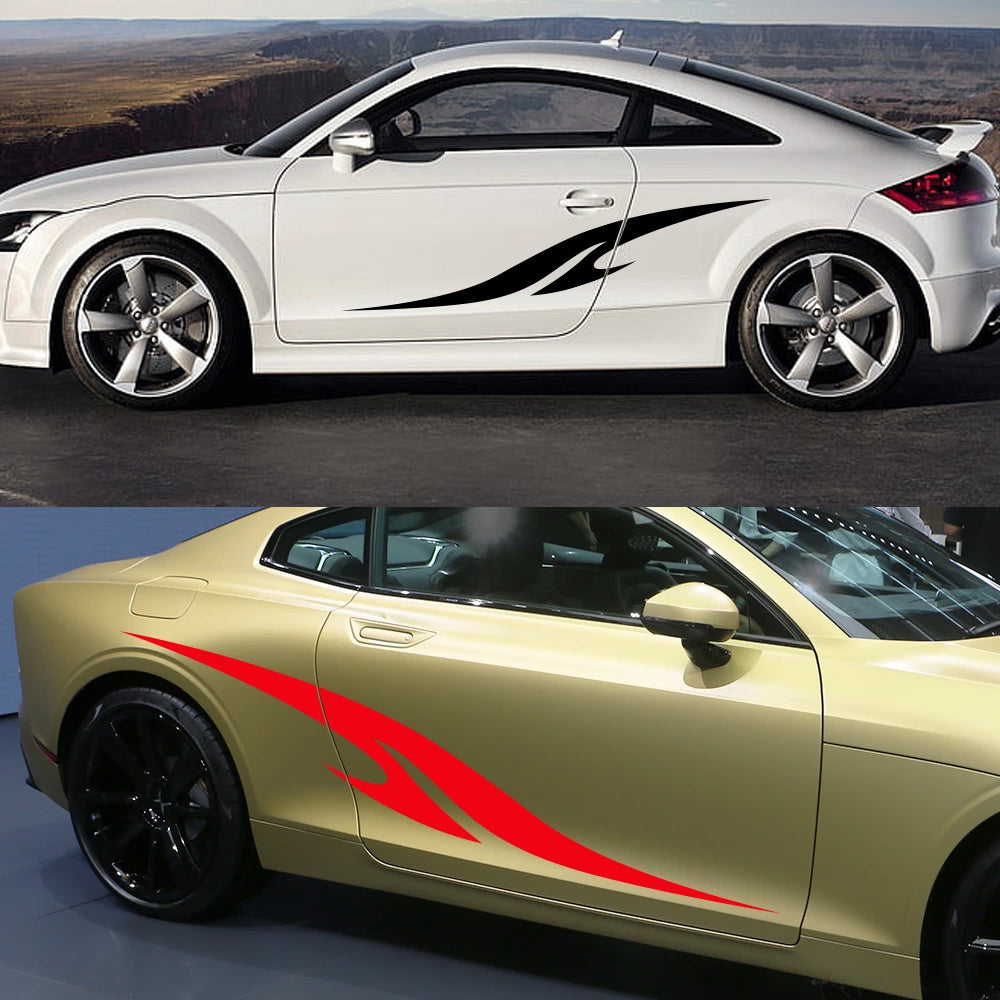 2Pcs Vinyl Racing Stripes Decal for Vehicle Side Skirts Glossy Irregular Graphic