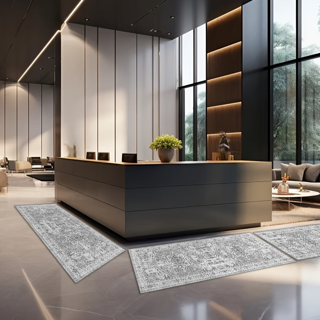 3-Piece Washable Boho Chic Kitchen Rug Set Non-Slip Polyester TPR Backing