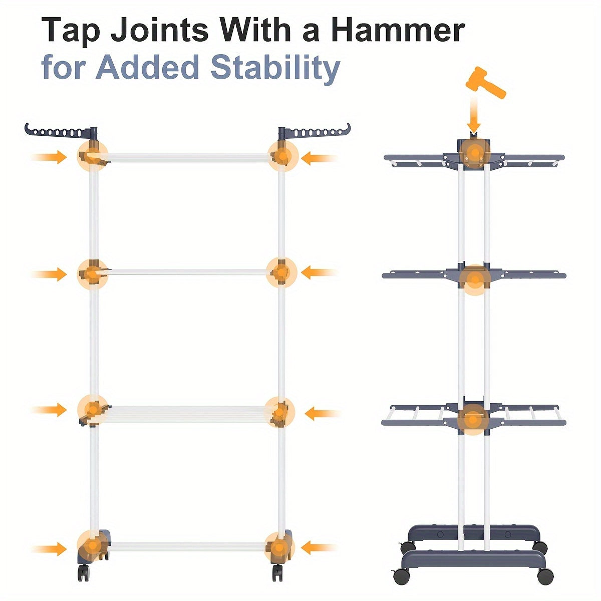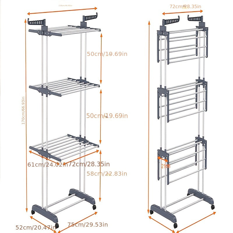 3-Tier Aluminum Clothes Drying Rack with Wheels Foldable Indoor Outdoor Laundry Organizer