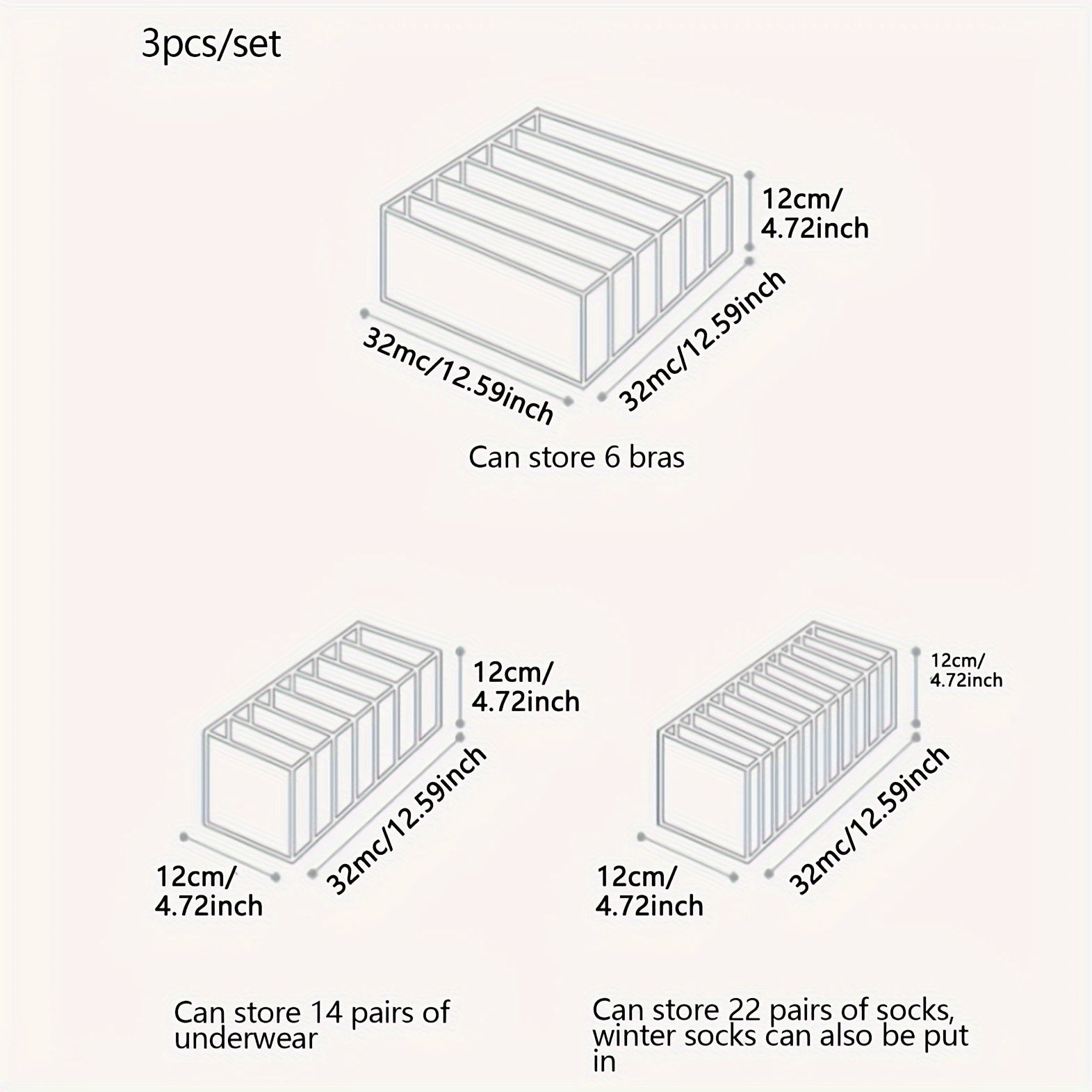 3Pcs Enclosed Car Underwear Storage Organizer Sock Drawer Wardrobe Compartments