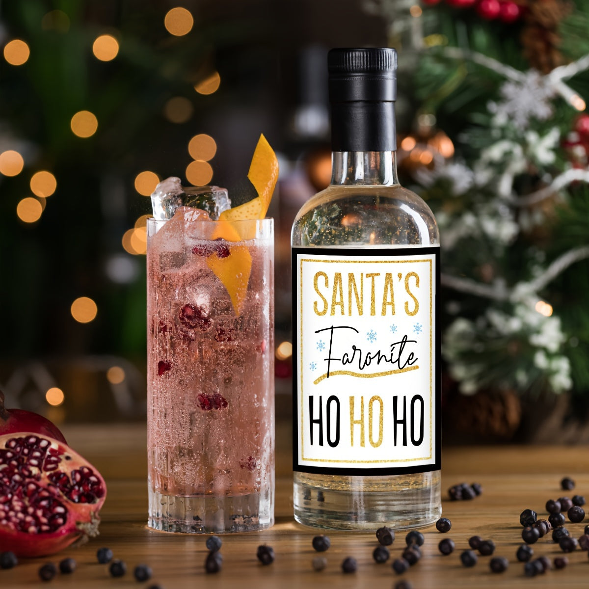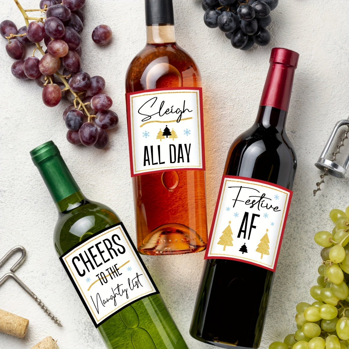 Black and Gold Christmas Wine Labels for Holiday Party Decorations Set of 4