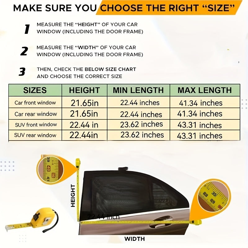 4pcs Car Window Shades Mesh Sunshade Bug Screen UV Protection Breathable Privacy