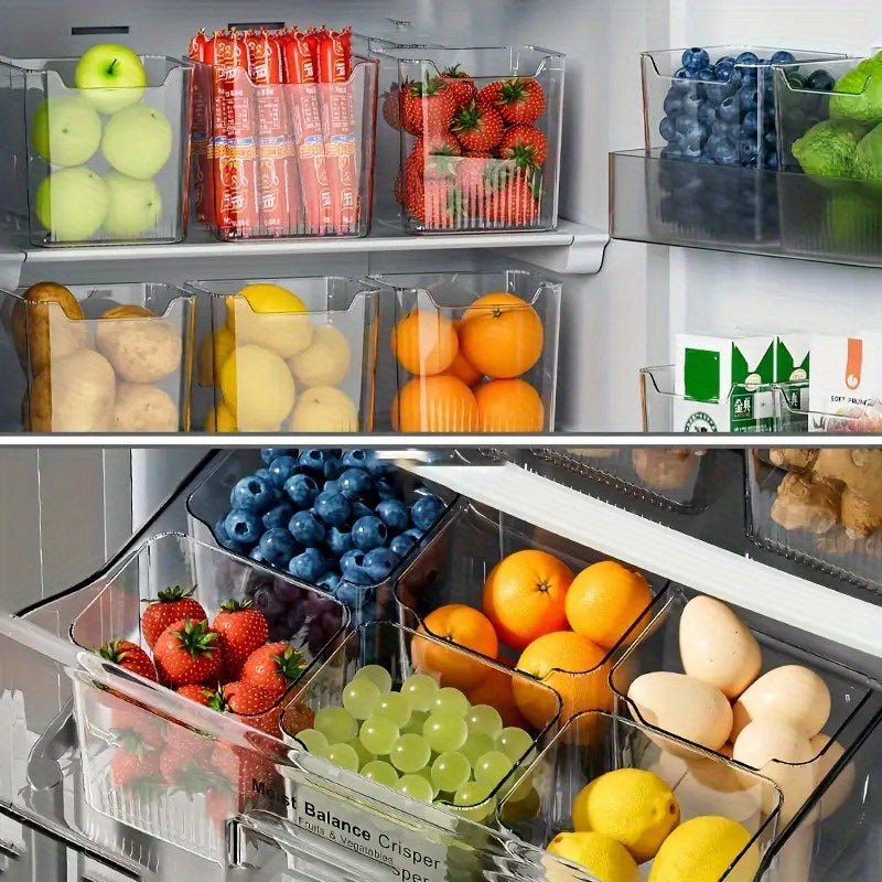 4pcs Clear Plastic Storage Boxes for Refrigerator, Stackable Pantry Organizer