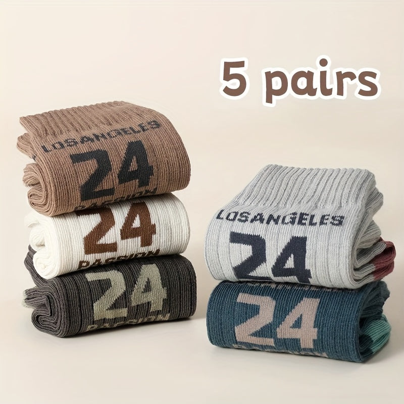 5 Boys' Crew Socks Polyester Blend Geometric Patterns Breathable All-Season