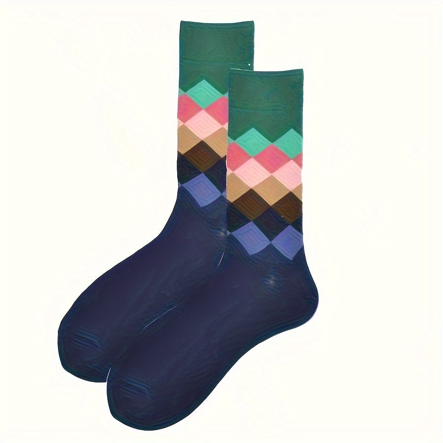 Men's Cotton Argyle Socks 5-Pack Mid-Calf Colorful Diamond Pattern