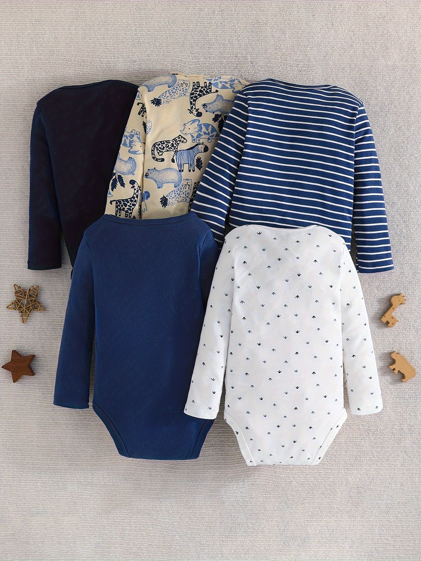 Baby Boys Long Sleeve Cotton Romper Set 5-Pack Cartoon Animal Pattern Spring Autumn Outdoor