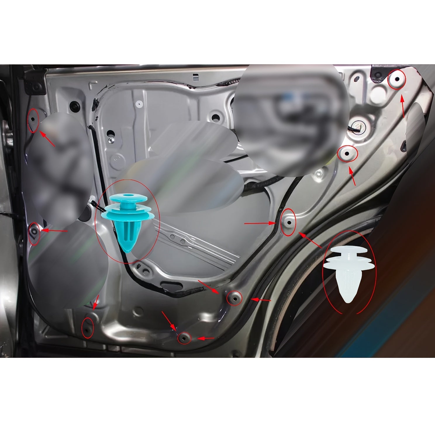 50 Pcs Car Door Panel Clips White Green Plastic Fasteners for Bumper Trim