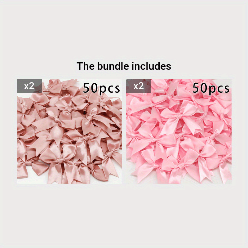 50 Small Pink and White Satin Ribbon Bows for Crafting Gift Tying Wedding Decorations