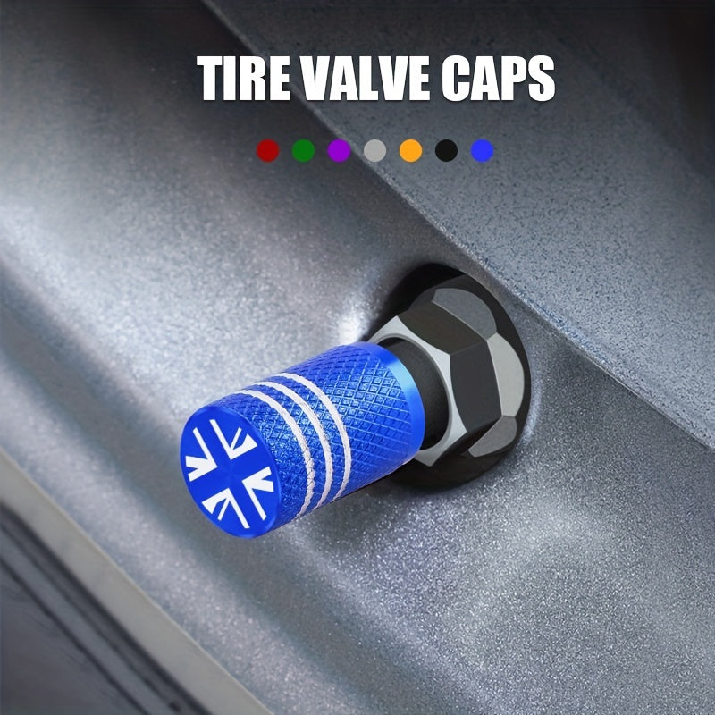 5pcs Aluminum Tire Valve Caps Black White Star Leakproof Corrosion-Resistant