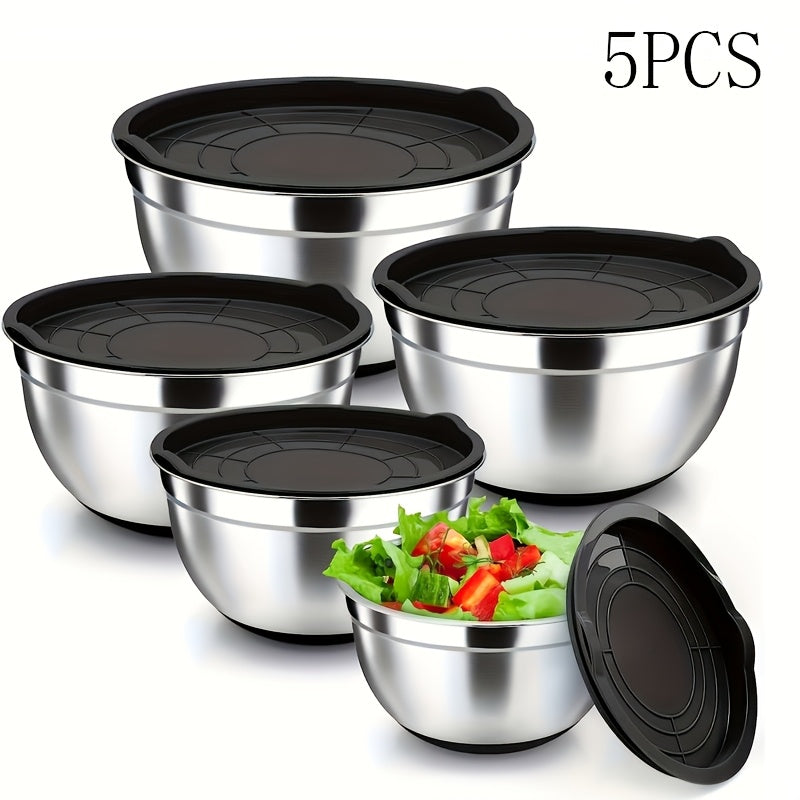 5pcs Stainless Steel Nesting Bowls Set with Airtight Lids for Baking and Serving