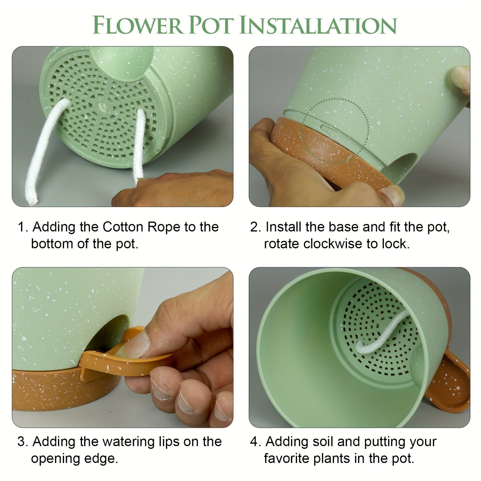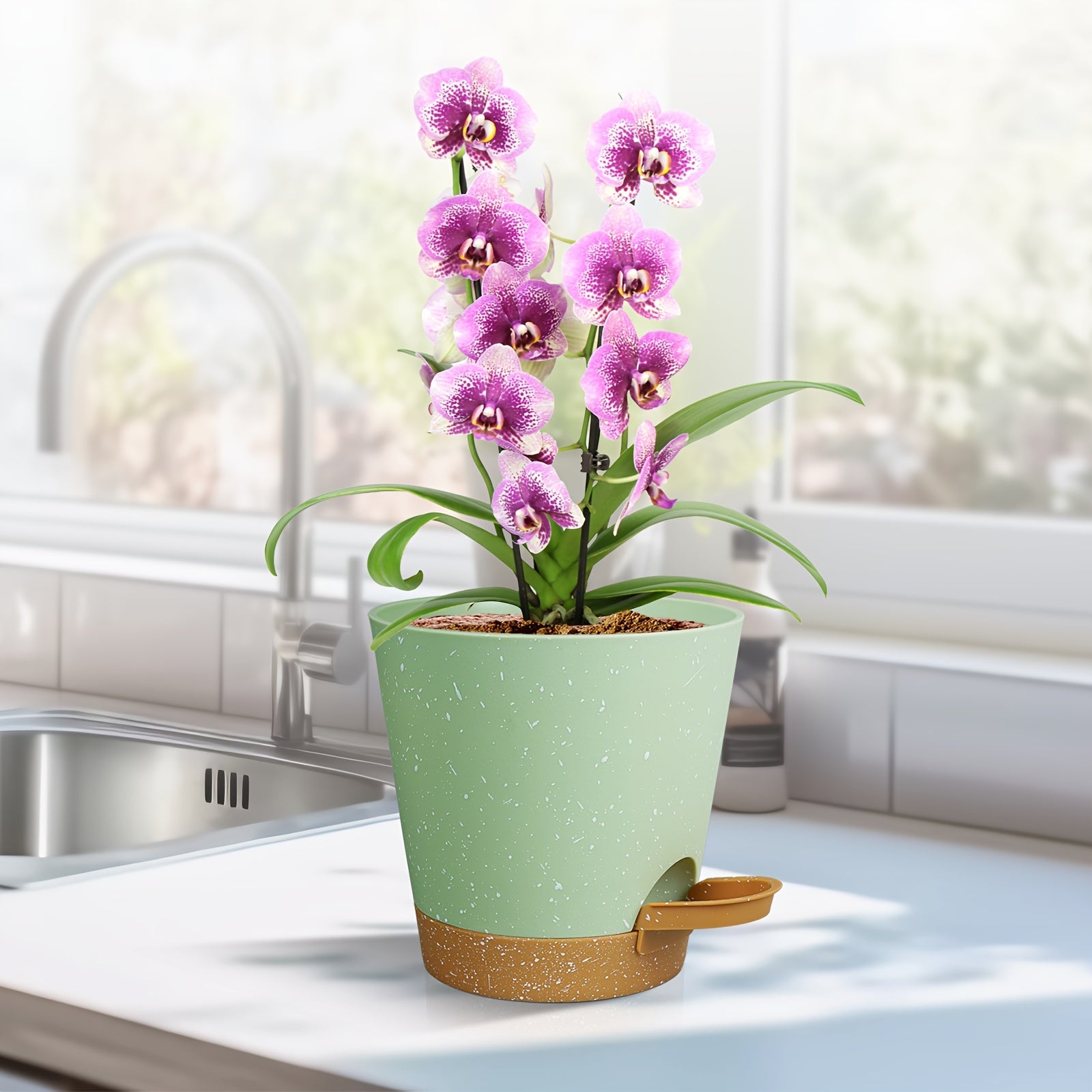 Set of 6 Modern Plastic Planters with Speckled Design Self-Watering Drainage Holes Indoor Outdoor