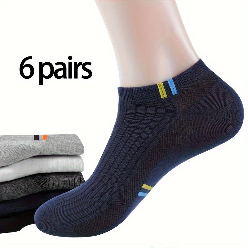 Men's Cotton Blend Ankle Socks 6 Pairs Lightweight Breathable Stretch Comfort
