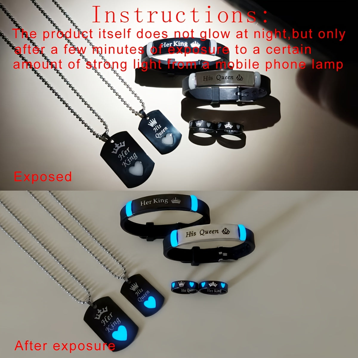 6-Piece Stainless Steel Love Crown Jewelry Set for Couples Necklace Bracelet Ring Gift