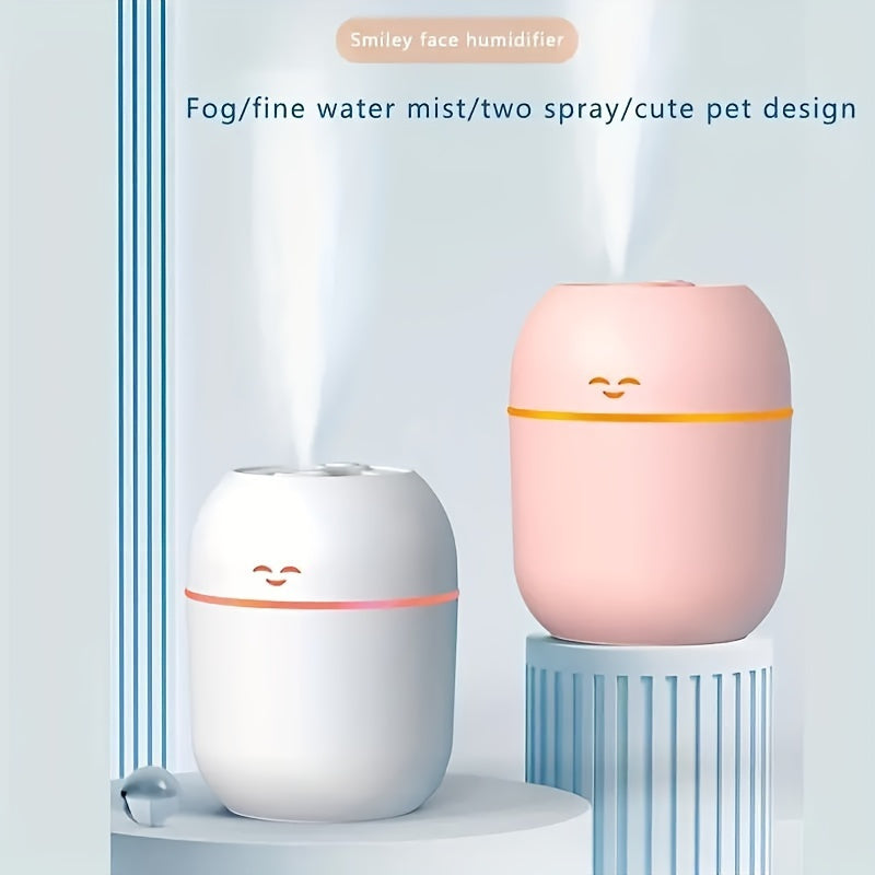 7.44oz USB-Powered Essential Oil Diffuser Humidifier with LED Nightlight and Smiling Face Design for Home and Car