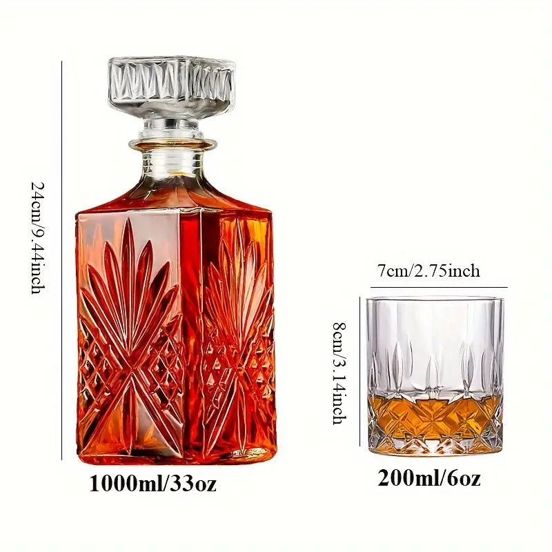 7-Piece Glass Whiskey Decanter Set with 6 Shot Glasses for Home Bar or Gift