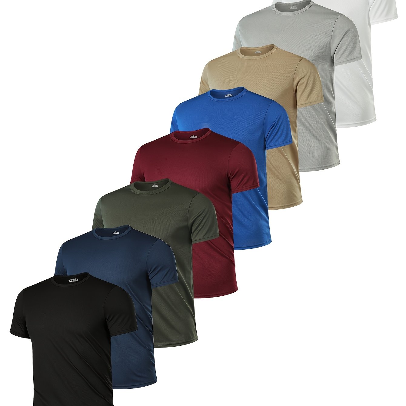8-Pack Men's Crew Neck T-Shirts Polyester Breathable Quick-Dry Solid Color Fitness Running Spring Summer