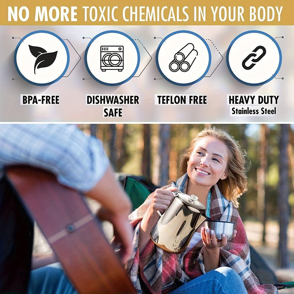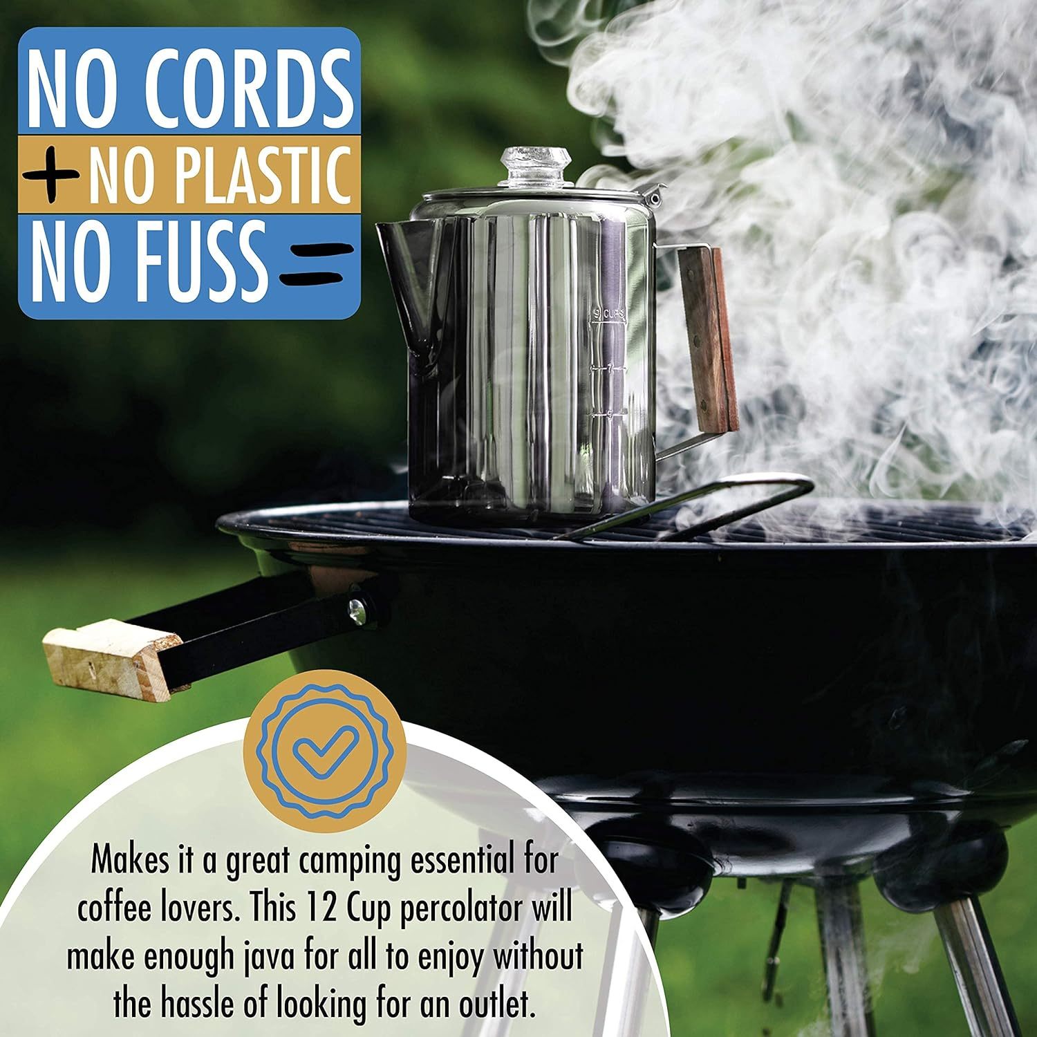 9-Cup Stainless Steel Coffee Maker with Wooden Handle No Electricity Camping