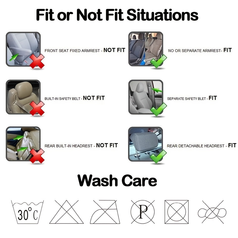 9PCS Car Seat Cover U-Shaped Strips Set Universal Fit Durable Fabric