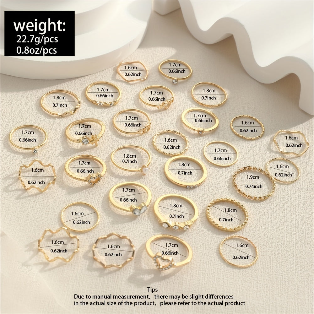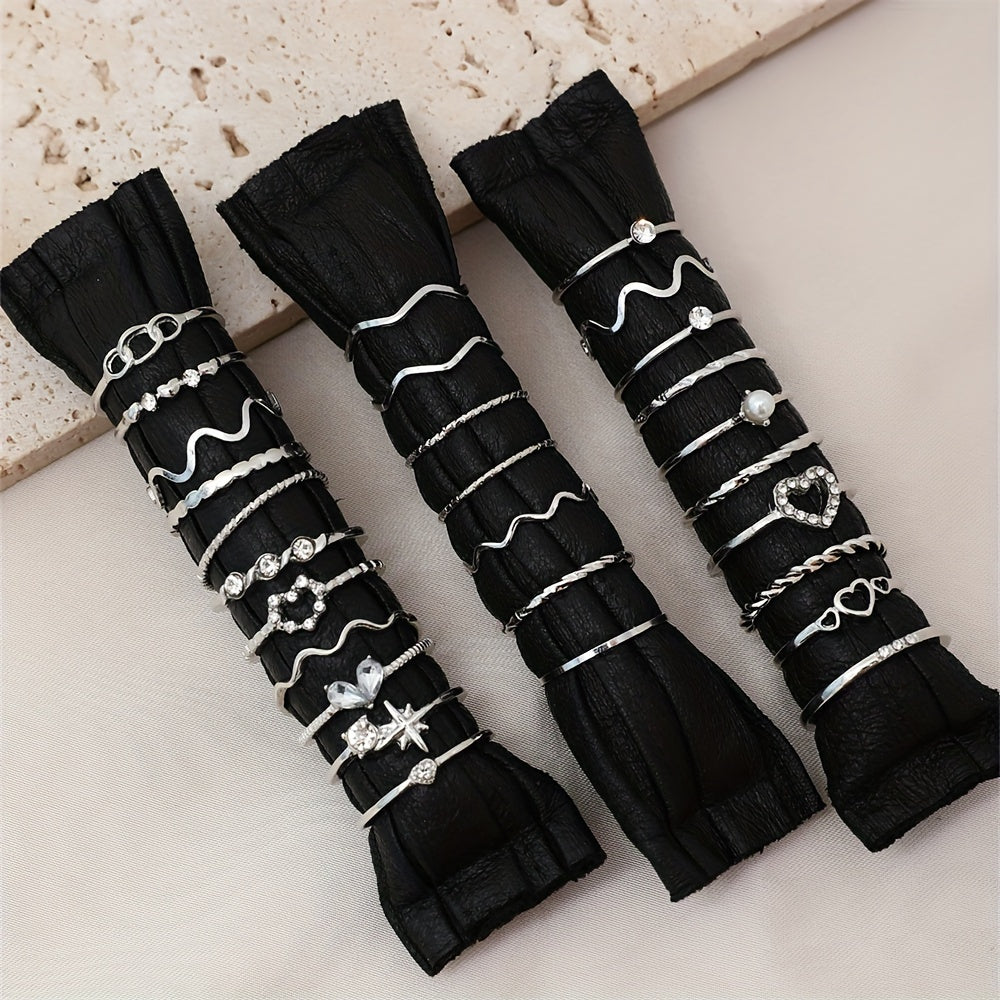 28-Piece Alloy Iron Stacking Rings Set with Heart Geometric and Wavy Designs for Daily Wear