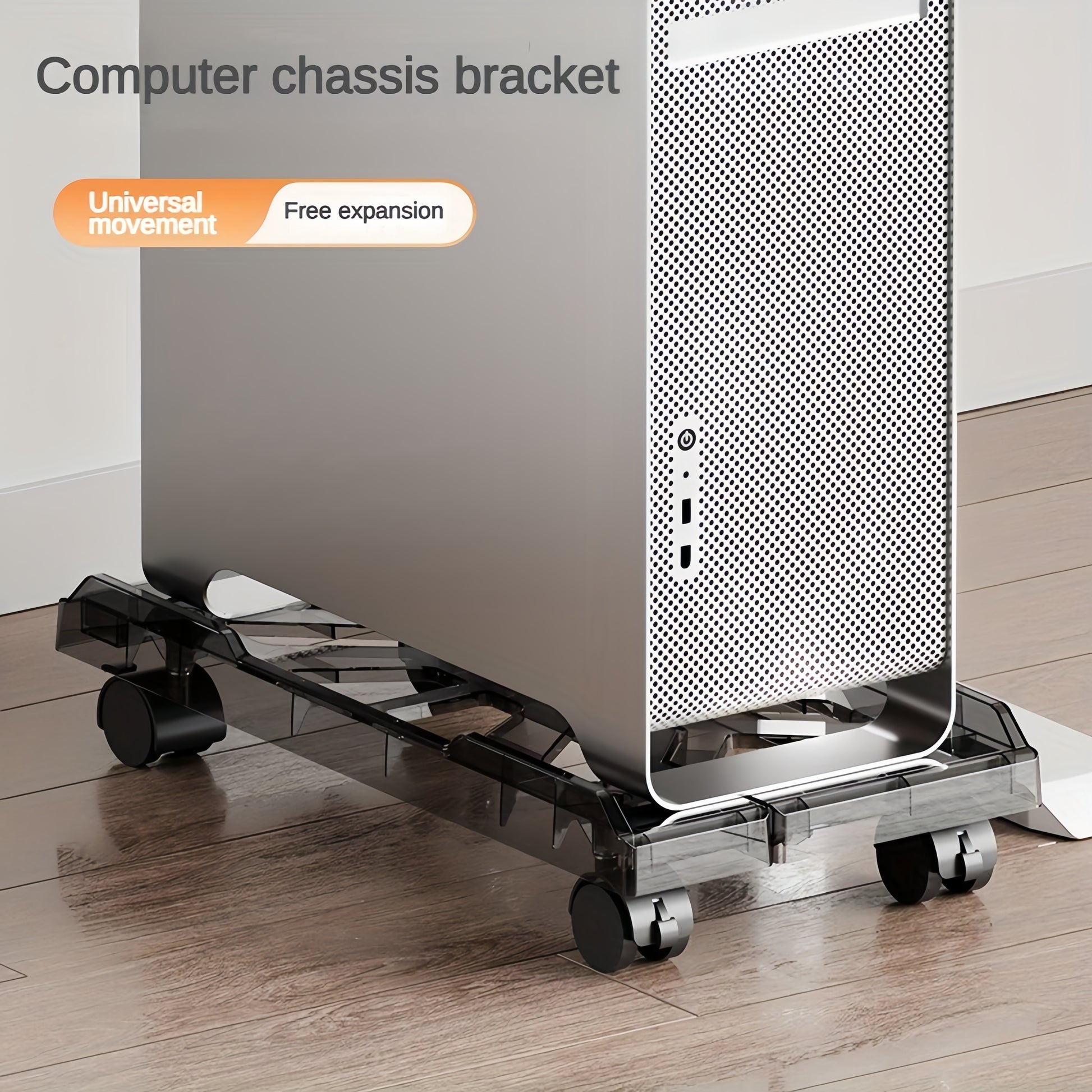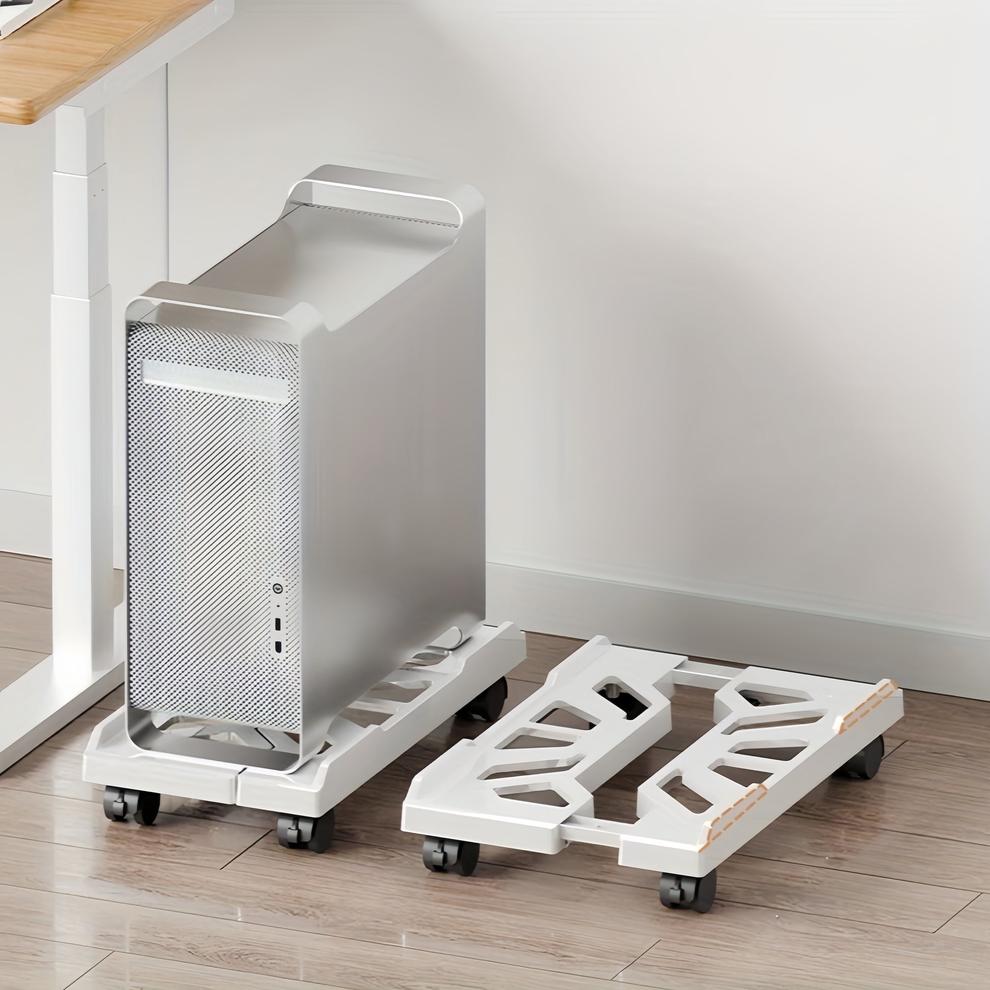 ABS Desktop Computer Tower Stand with Rolling Wheels and Adjustable CPU Holder for Home Office