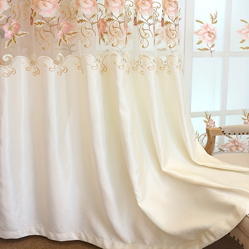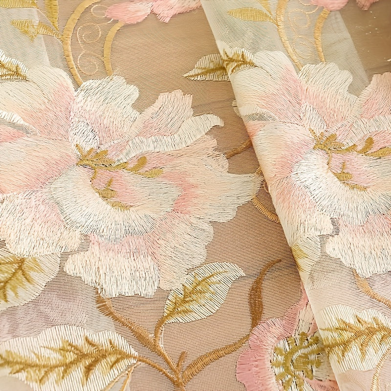 Pink Floral Embroidered Sheer Curtain for Living Room and Bedroom 1 Piece