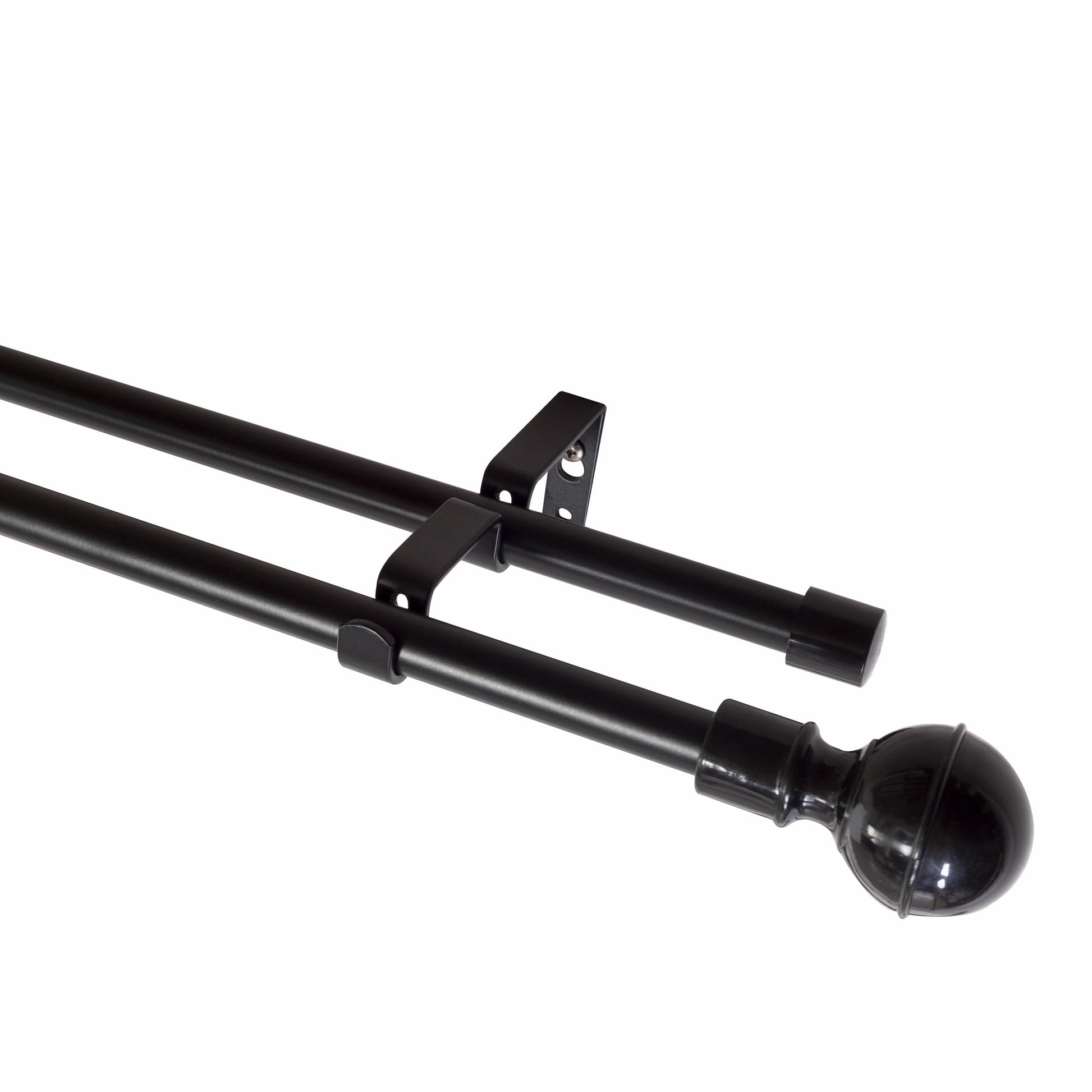 Black Adjustable Dual Curtain Rod Set 16-94 Inches with Hardware and Installation Kit