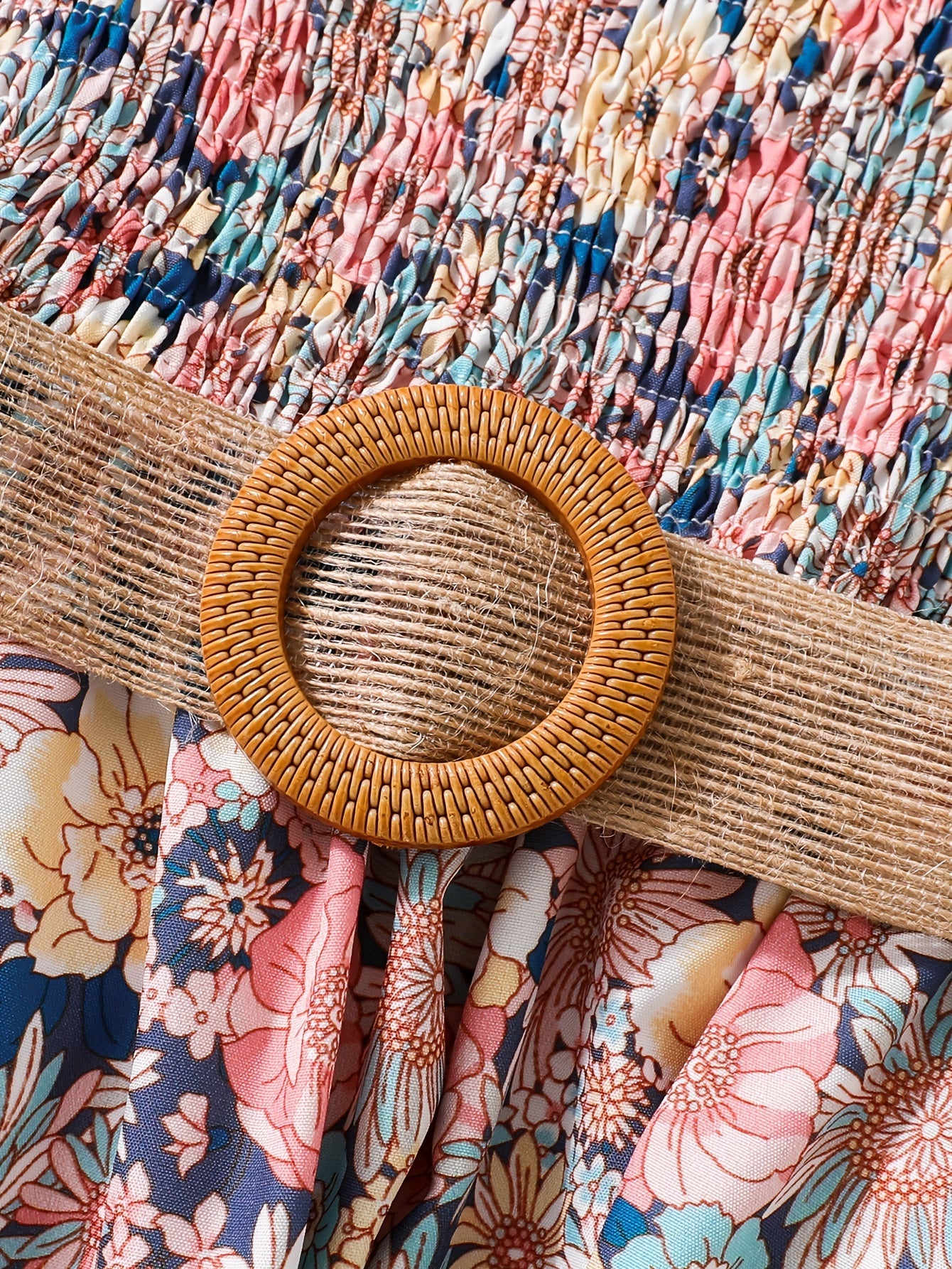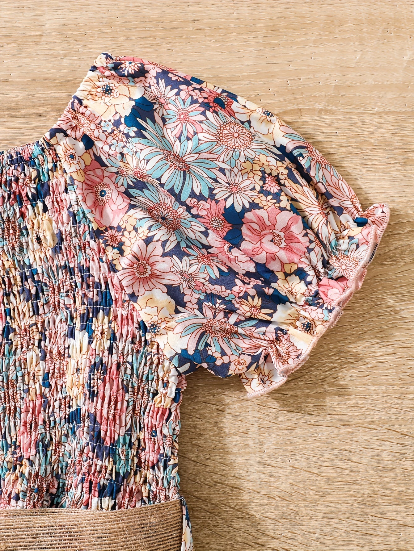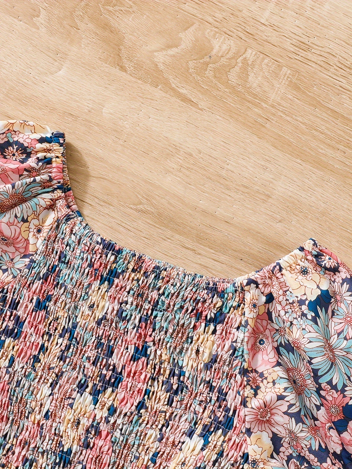 Girls Summer Dress Floral Puff Sleeves Belt Lightweight Polyester Machine Washable Beach Vacation