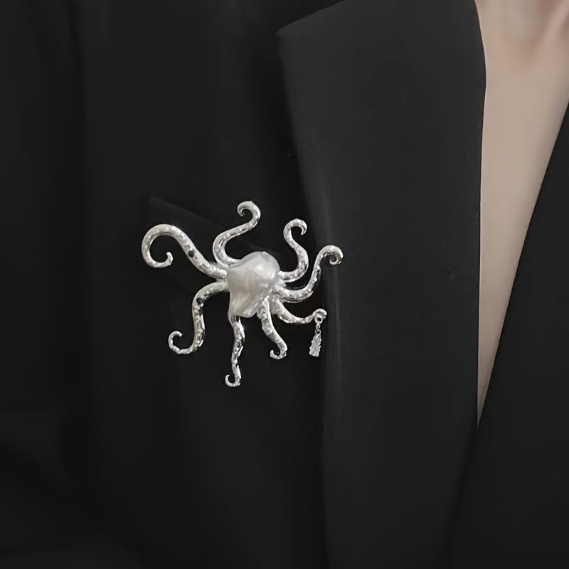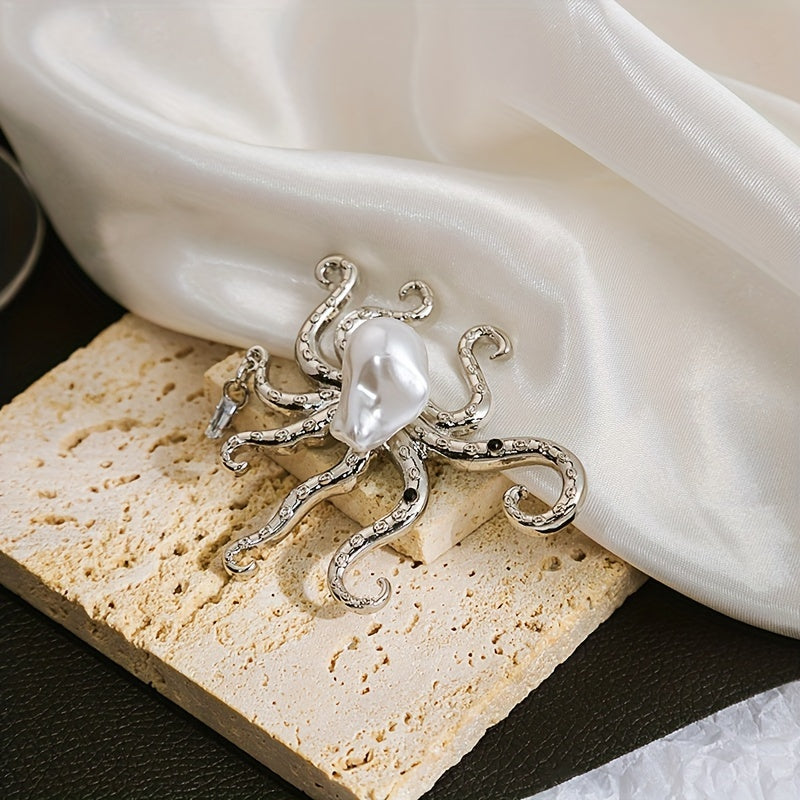 Ocean-Themed Octopus Brooch with Baroque Pearl and Diamond Inlay Jewelry Accessory