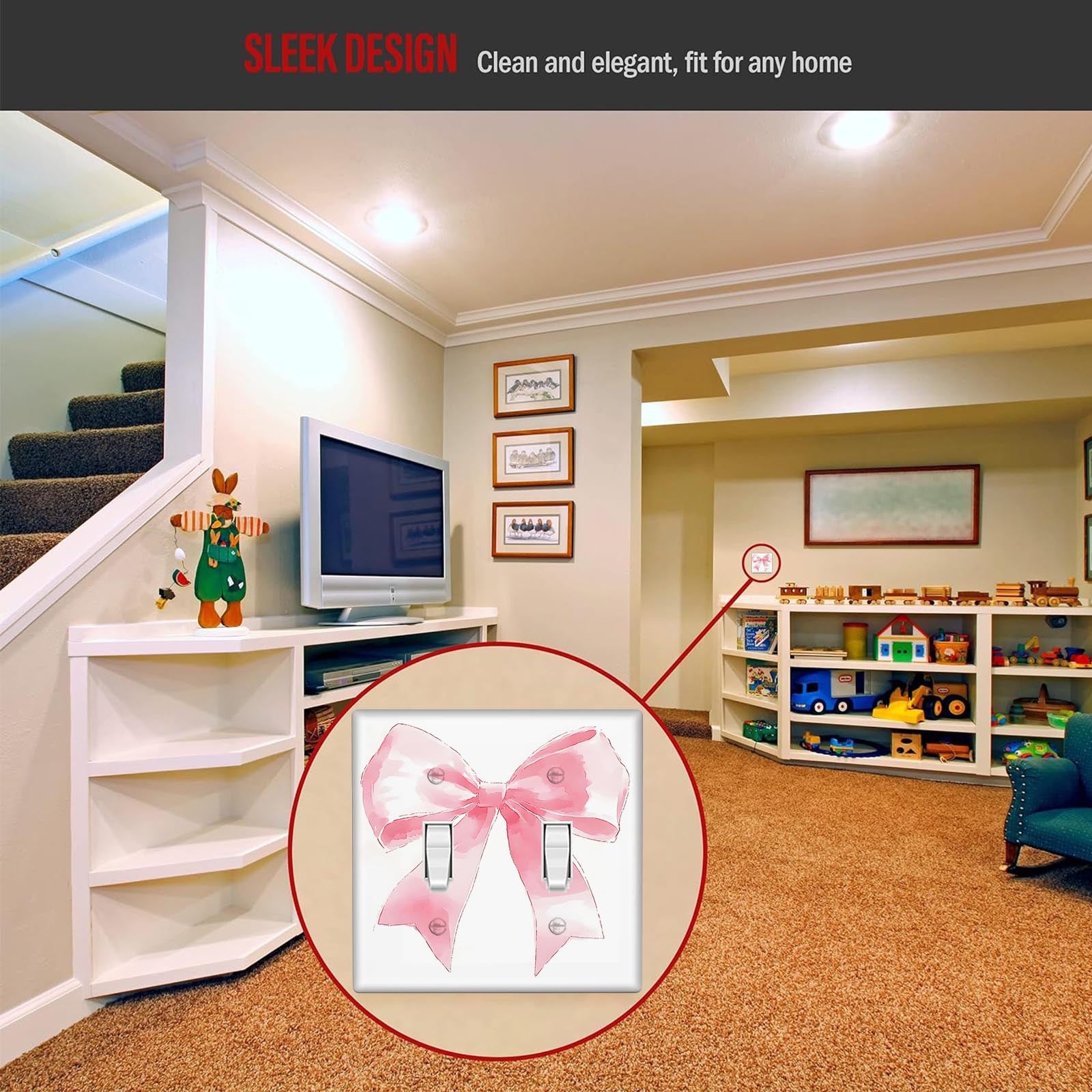 Pink Art Deco Wall Plate with Bow Design Reusable PC Material Decorative Outlet Cover for Bedroom Kitchen