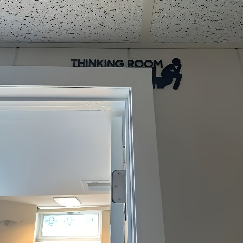 Black Wooden Bathroom Door Frame Decor with Toilet Sign and Window Hanging