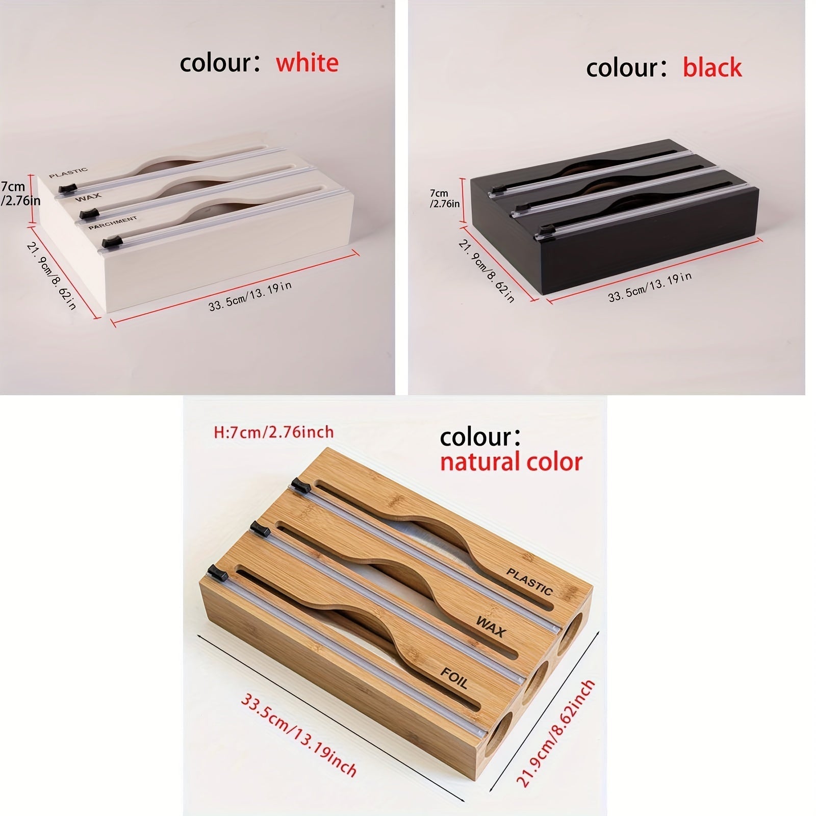 Bamboo Wrap Organizer Set with Storage Box Cutter Labels Aluminum Foil Dispenser