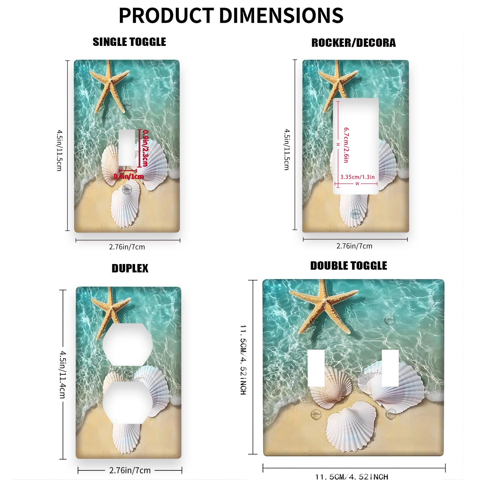 Beach Shell Starfish Wall Plate Decorative Light Switch Cover Indoor Outdoor Easy to Clean