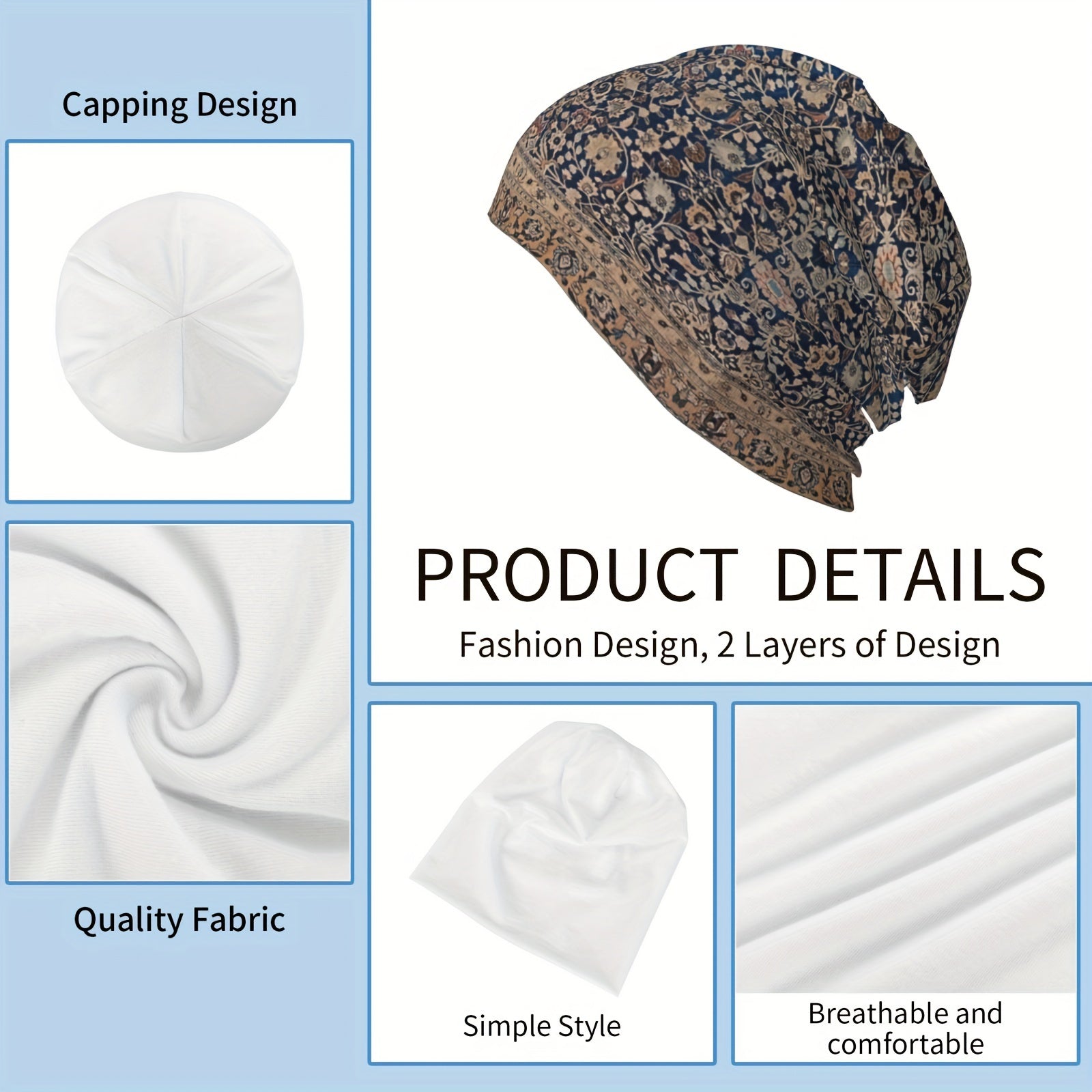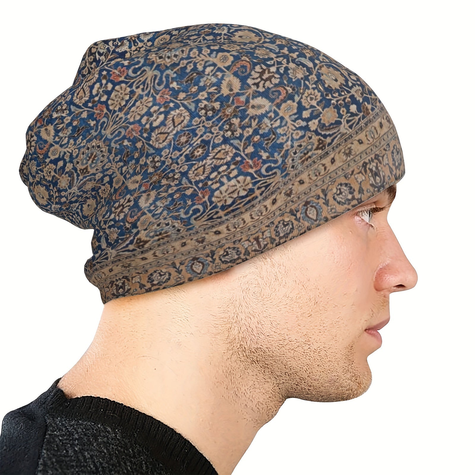 Antique Tabriz Persian Rug Beanie Boho-Chic Skull Cap for Men Women Soft Stretchy