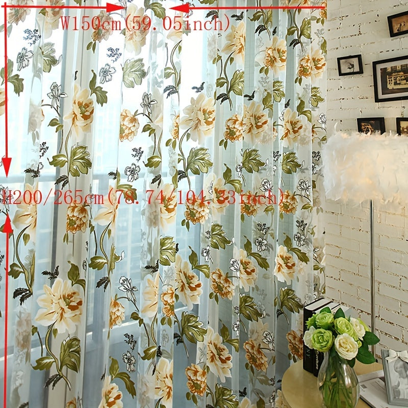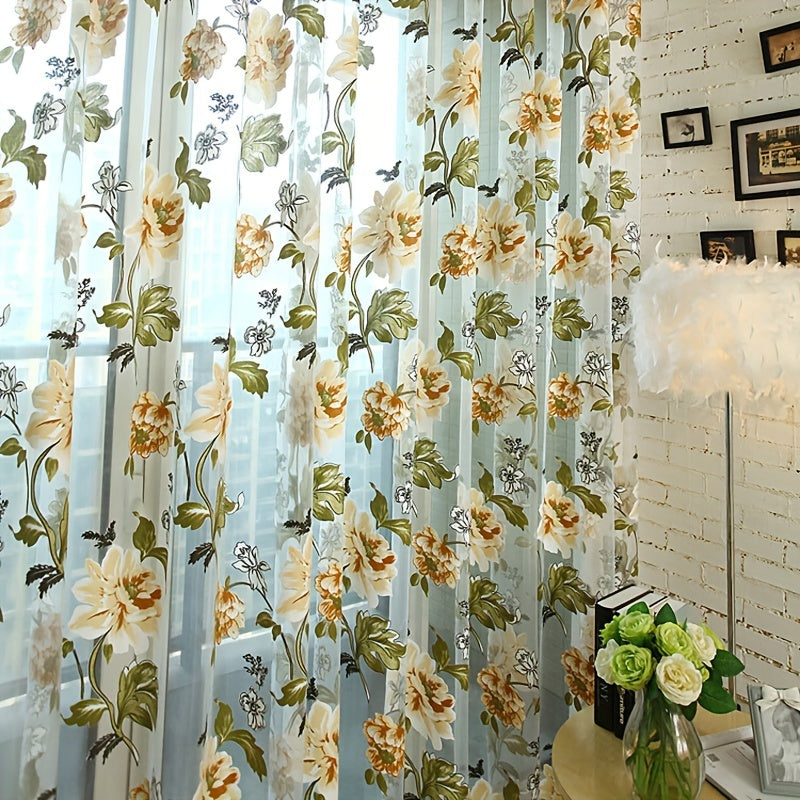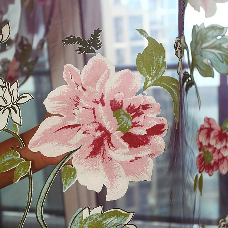 Floral Tulle Sheer Curtain Panel with Rod Pocket Purple Yellow Flowers Living Room Decor