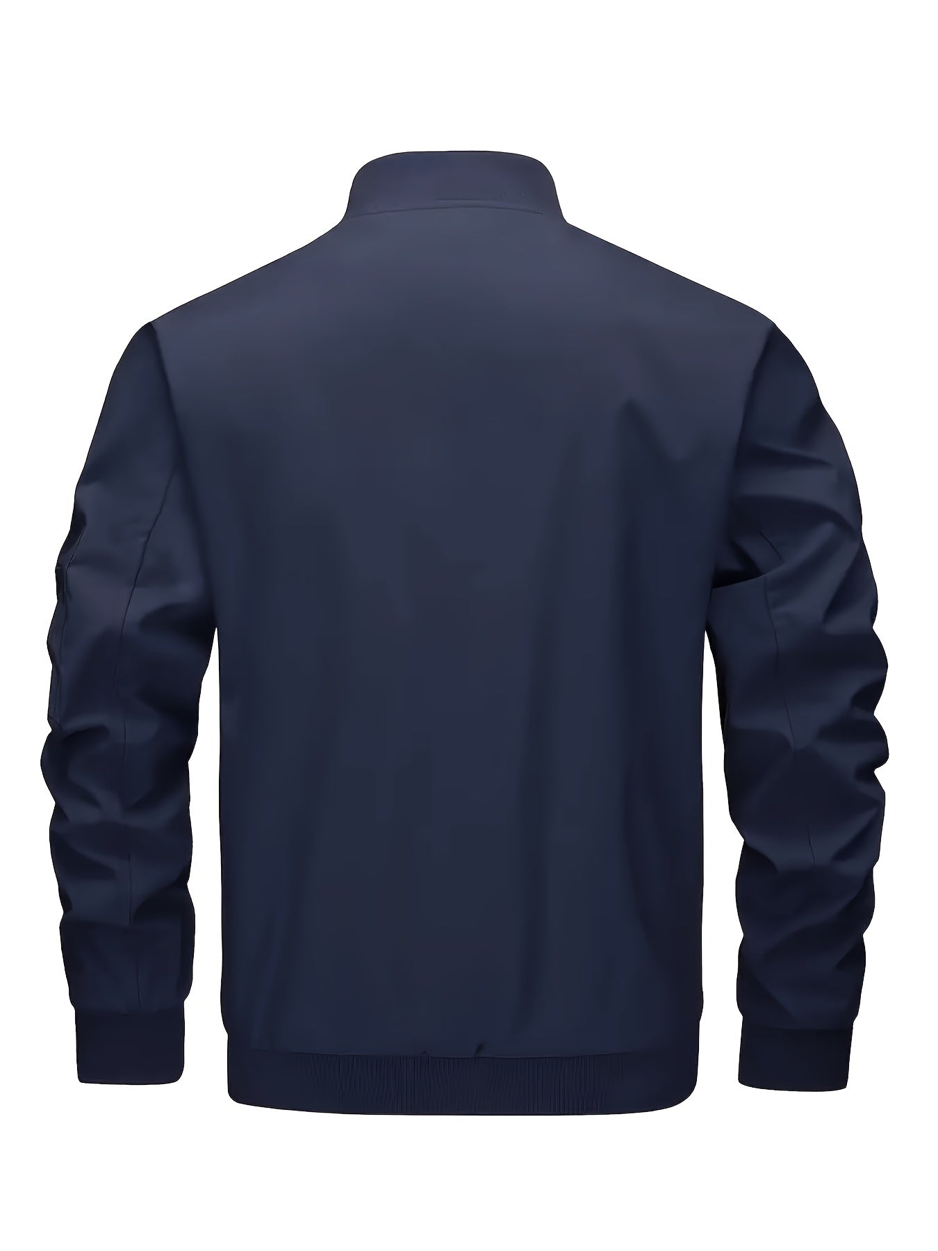 Men's Beige Bomber Jacket with Zipper Stand Collar Ribbed Cuffs and Stretch Fabric for Spring Fall Outdoor Activities