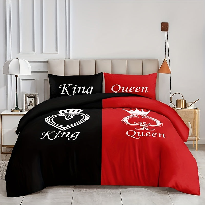 Black and Red Crown Pattern Bedding Set 3 Pieces Duvet Cover and Pillowcases