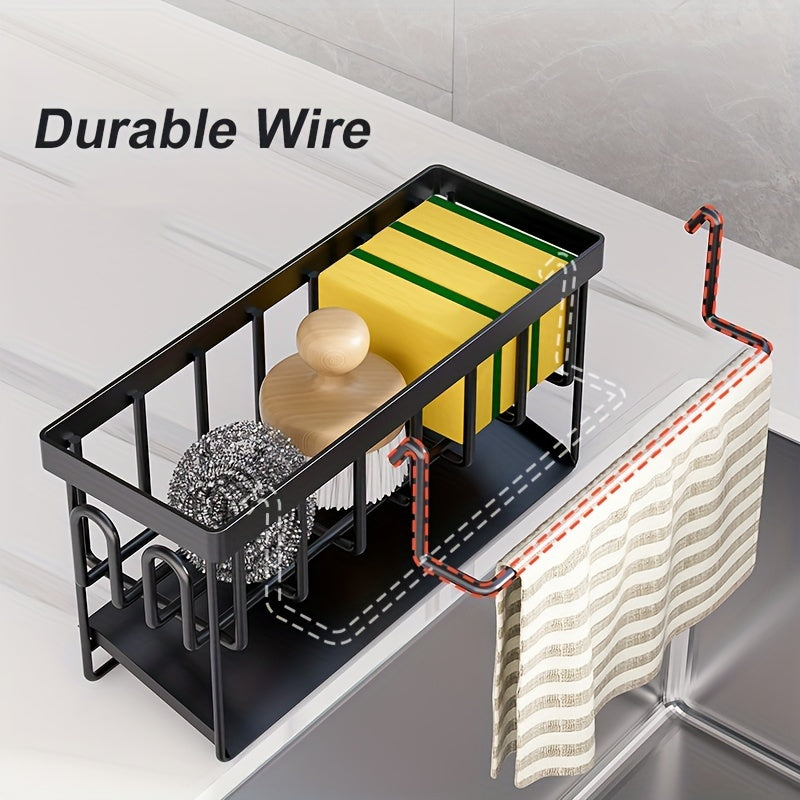Black And White Kitchen Sink Organizer With Towel Rack And Accessories