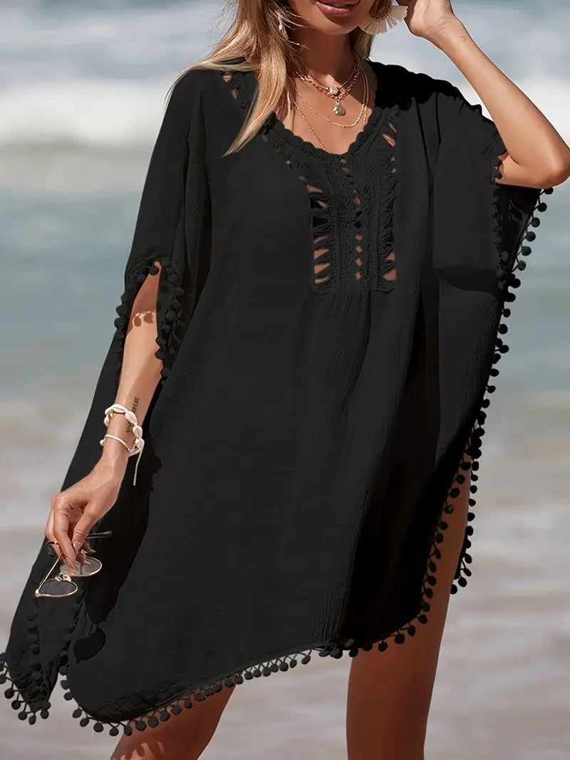 Bohemian Crochet Cover Up for Women with Batwing Sleeves and Side Split Beach Sun Protection