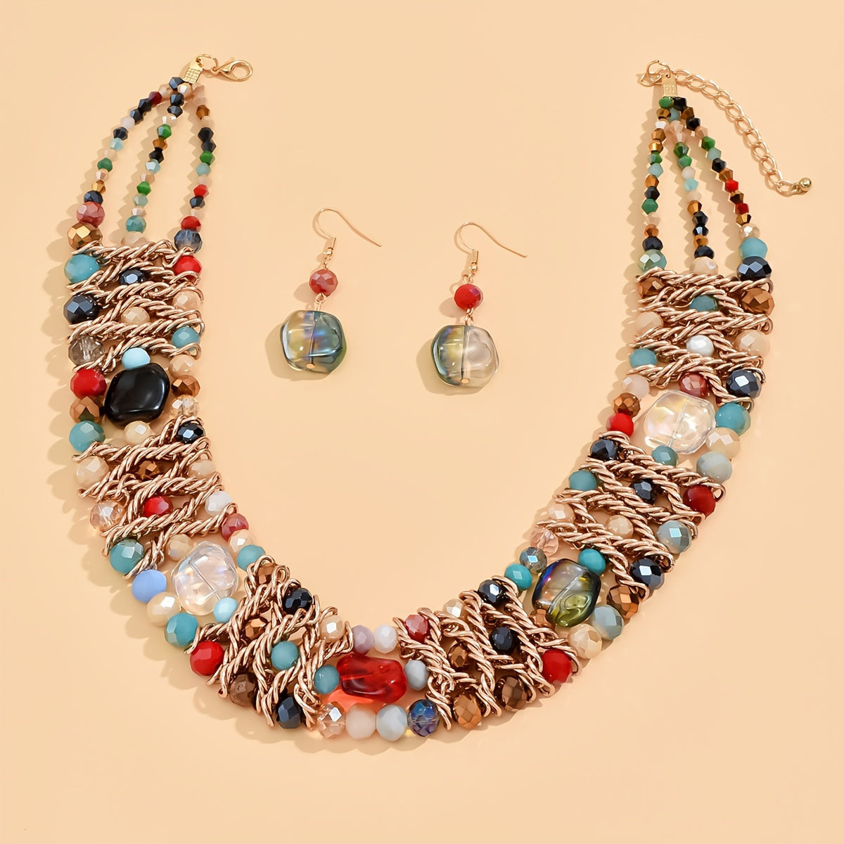 Boho Style Jewelry Set with Dangle Earrings and Colorful Faux Inlay for Daily Wear