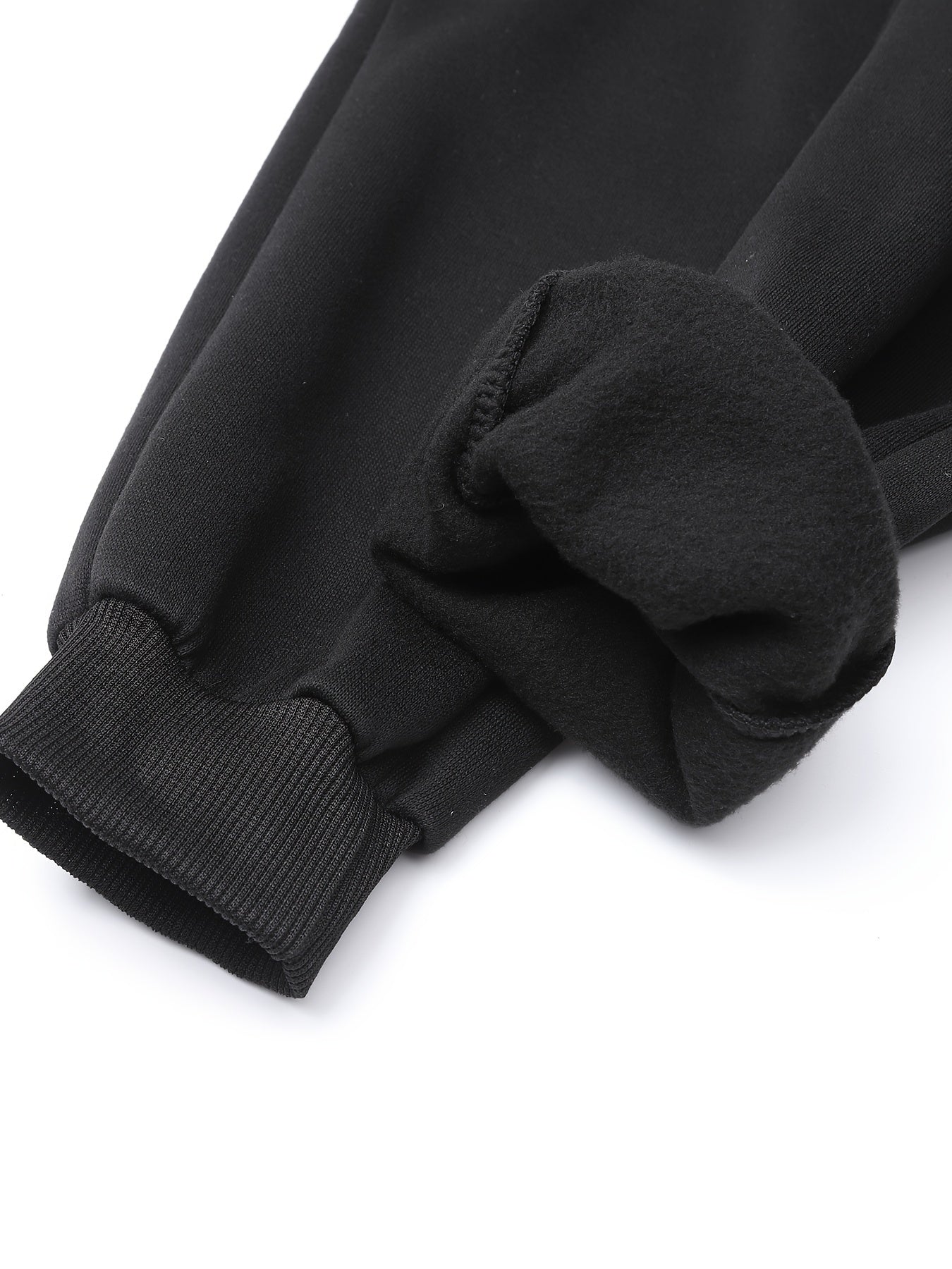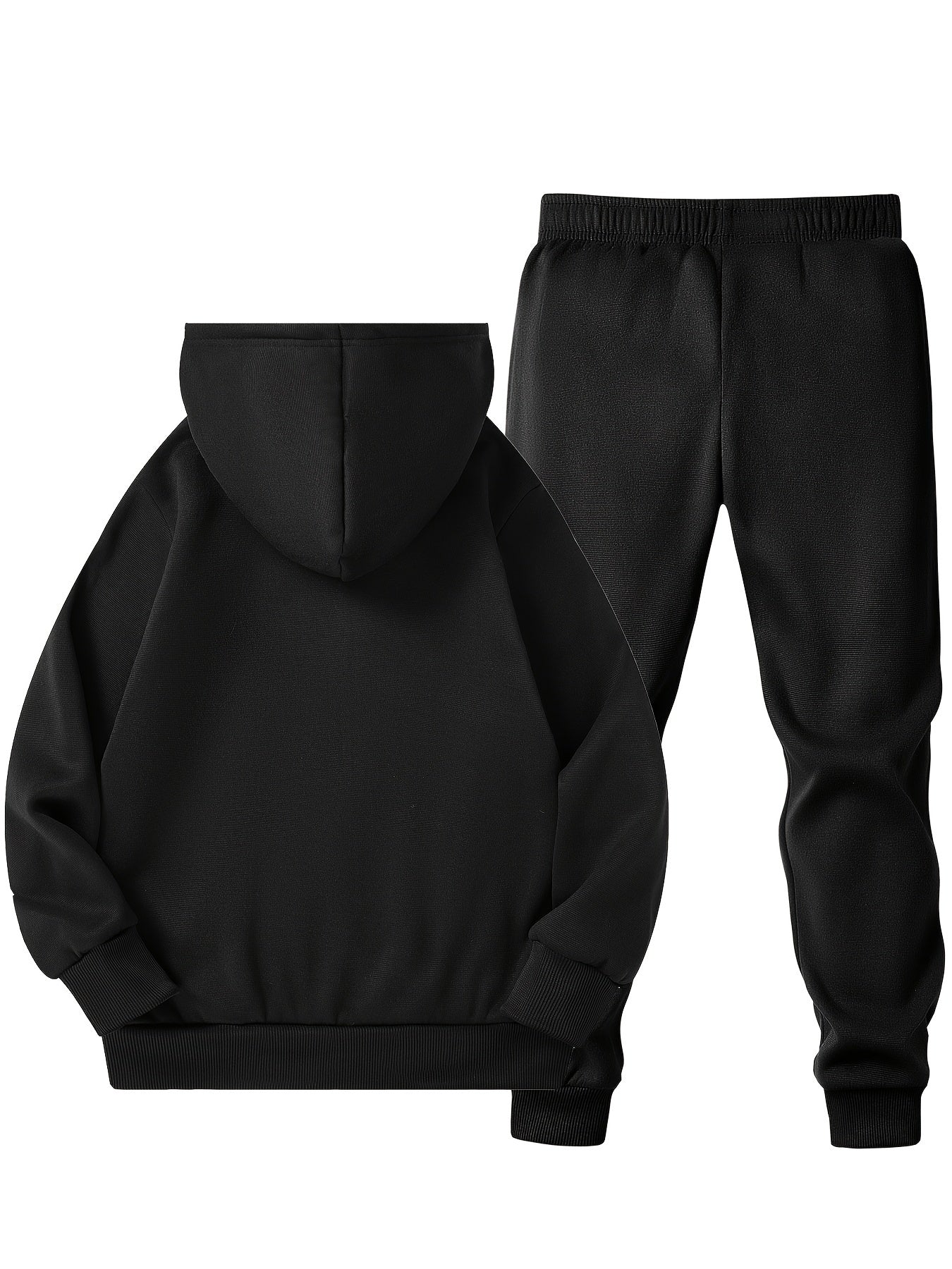 Boys' Black Basketball Print Hoodie and Jogger Set Polyester Zip Pockets Casual Sports Outdoor