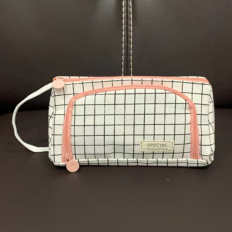 Canvas Triangle Pen Bag with Large Capacity Portable Office Stationery Storage Pencil Case