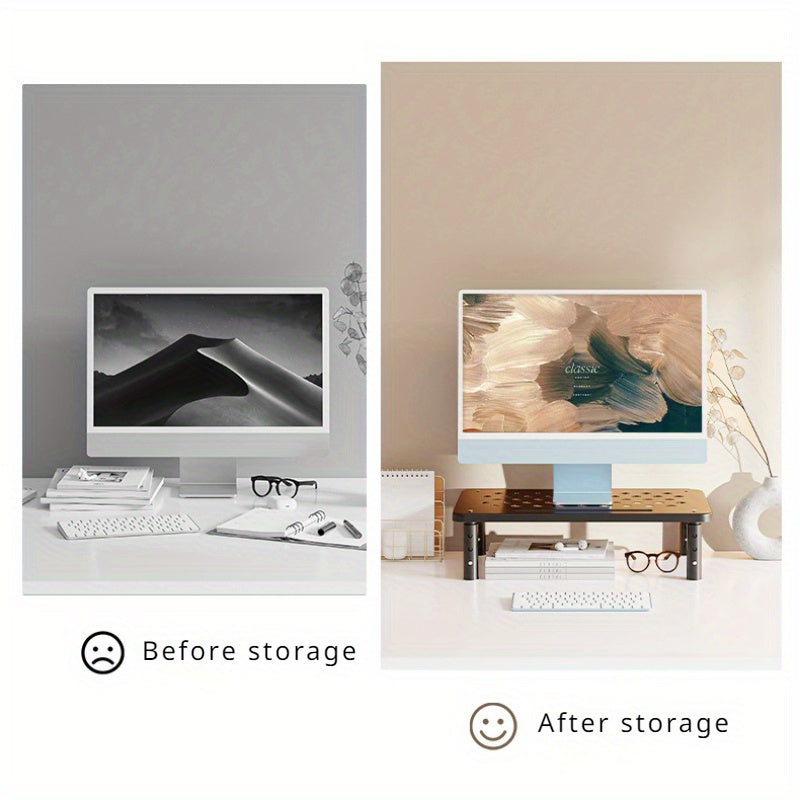Carbon Steel Monitor Stand with Adjustable Height and Storage Shelf for Office Desk