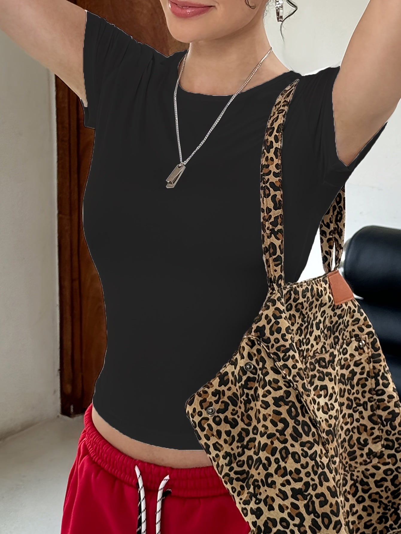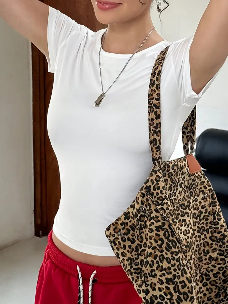 Slim Fit Round Neck T-Shirt for Men Solid Color Micro Elastic Polyester Casual