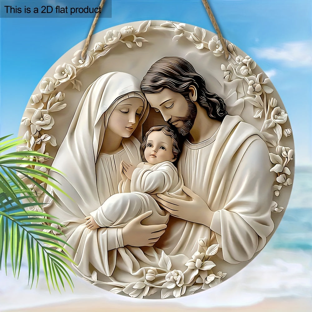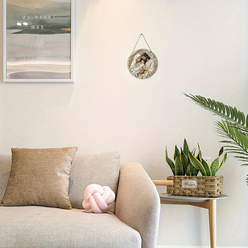 Wooden Nativity Wreath Wall Decor 19.99cm Round Holiday Home Ornament
